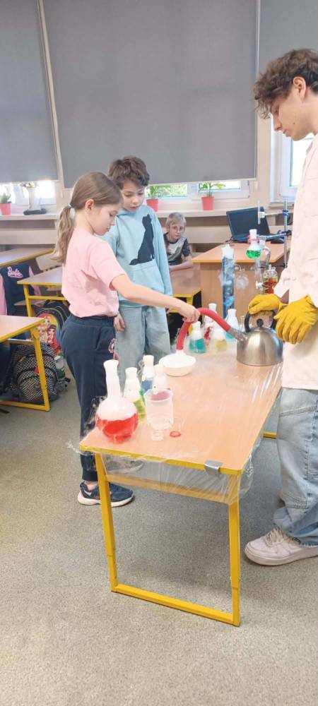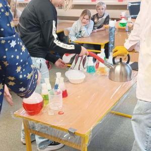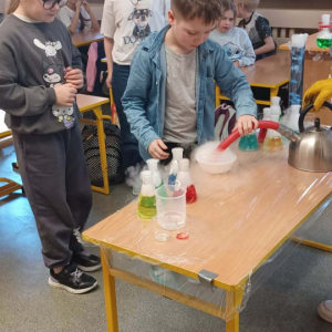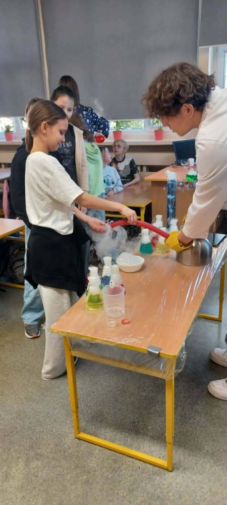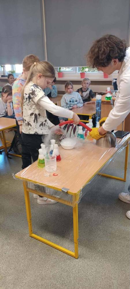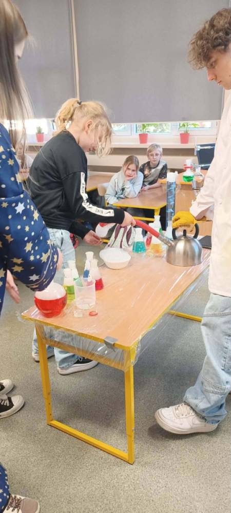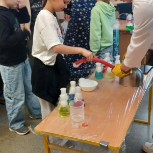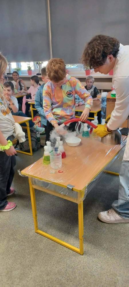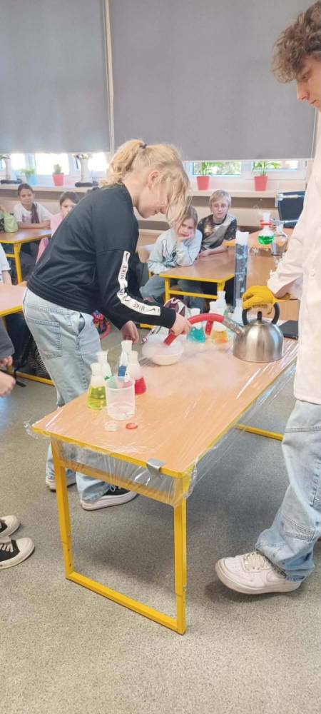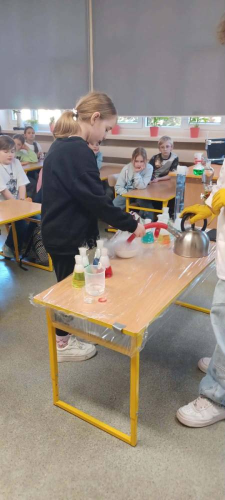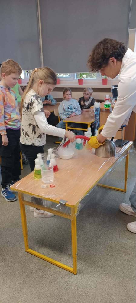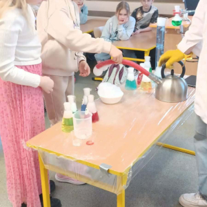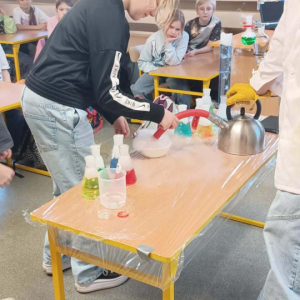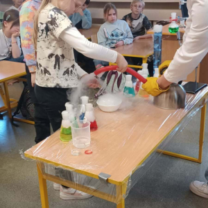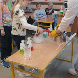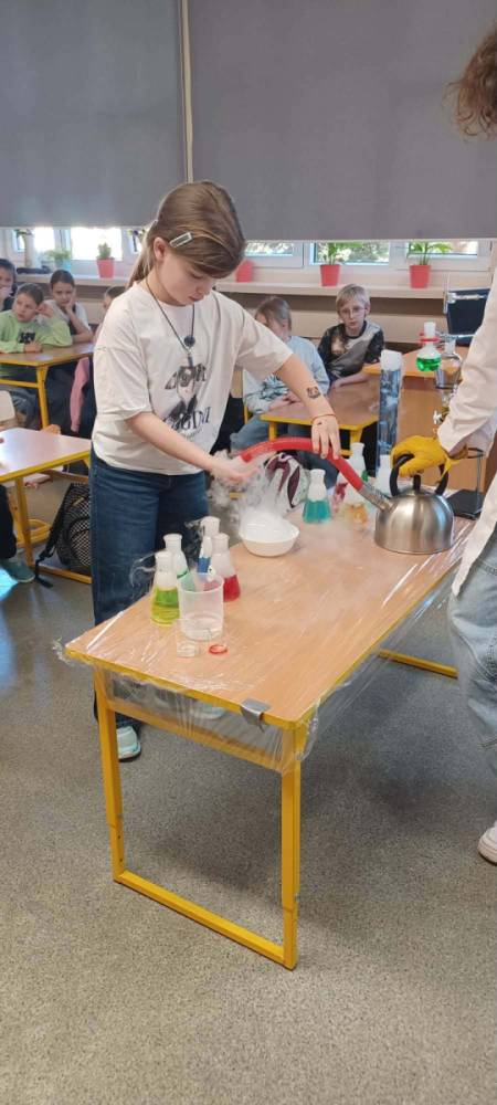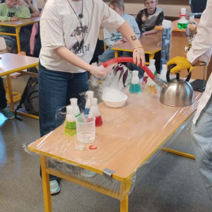 Podczas warsztatów chemicznych nasze uczennice (i dzielnie wspierający je koledzy) udowodnili, że nauka to nie tylko wzory w podręczniku, ale przede wszystkim świetna zabawa i niesamowite efekty wizualne.