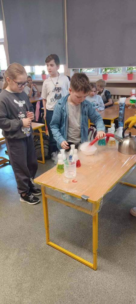 Zamiast tradycyjnych kwiatków, klasa 3a postawiła na naukowe doświadczenia, zamieniając swoją salę w profesjonalne laboratorium. To był dzień pełen pasji, kolorowych odczynników i... odrobiny magii!