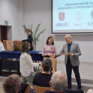 Z przyjemnością informujemy, że dwie uczennice naszej szkoły Aleksandra Gawlik z klasy 8c i Julia Szklarz z klasy 8b zostały finalistkami Wojewódzkiego XV Konkursu Astronomicznego organizowanego przez XIII Liceum Ogólnokształcące w Szczecinie pod patronatem Polskie Towarzystwo Astronomiczne oraz Prezydenta Miasta Szczecin.
