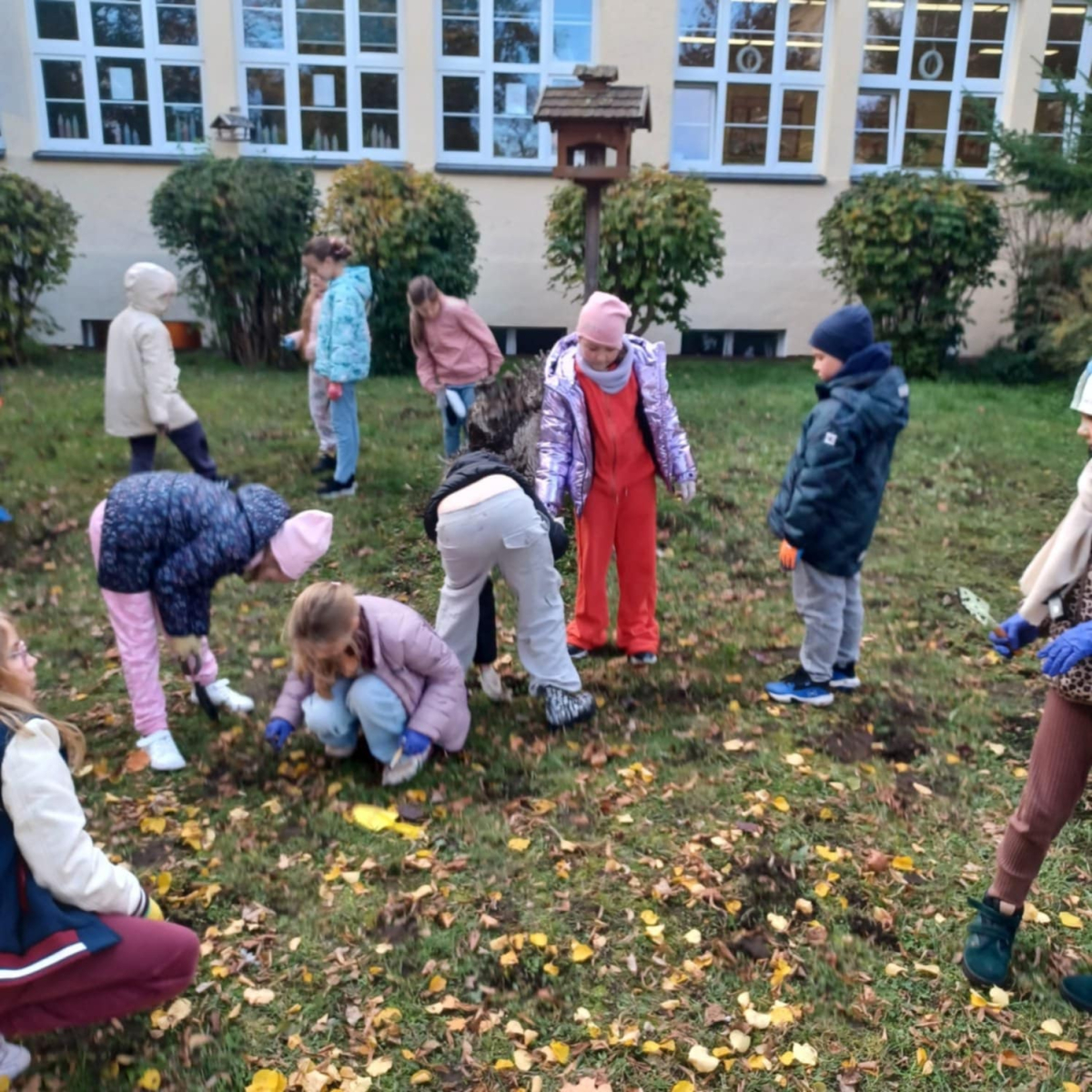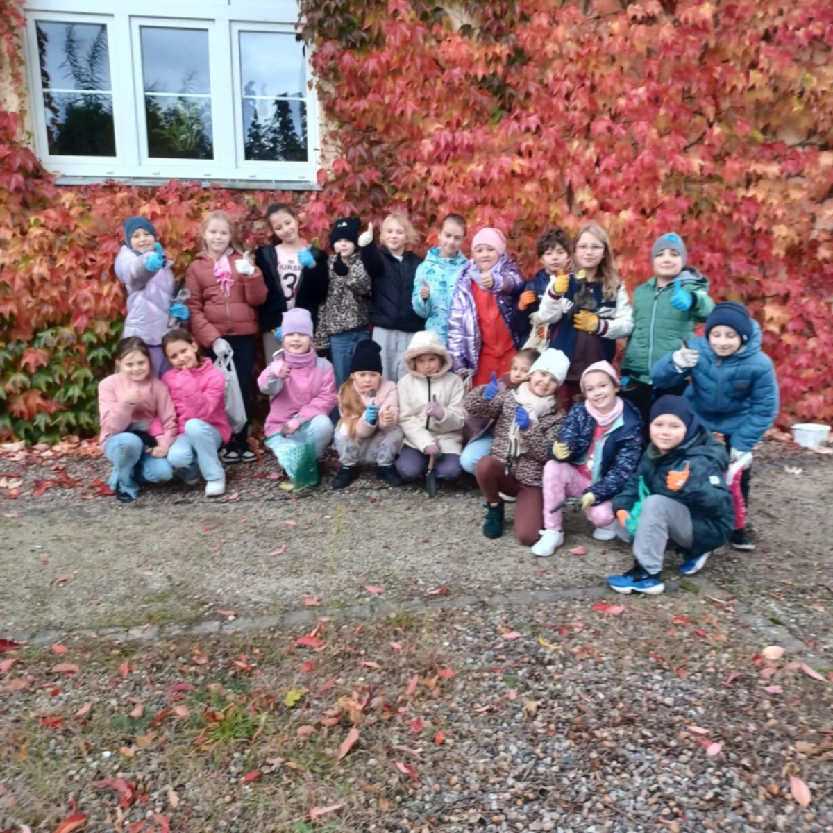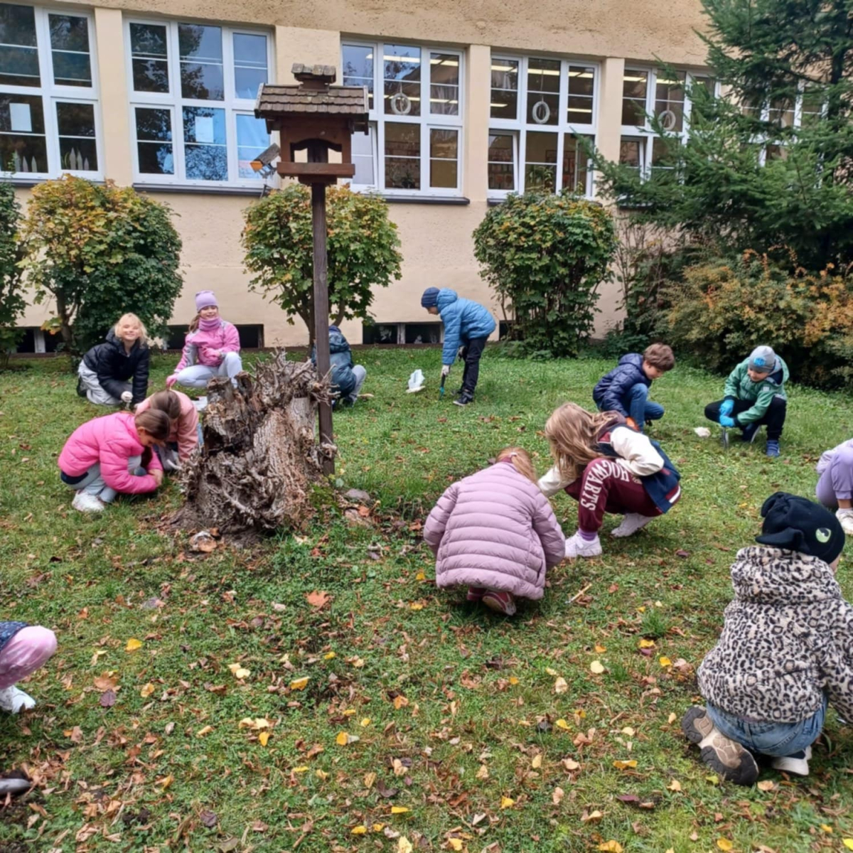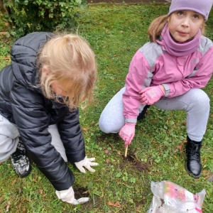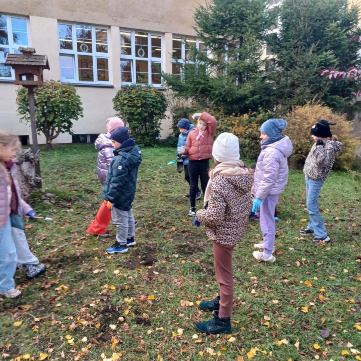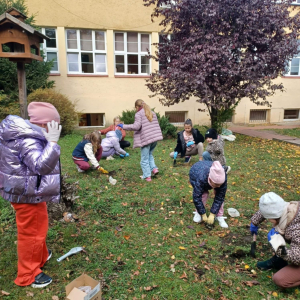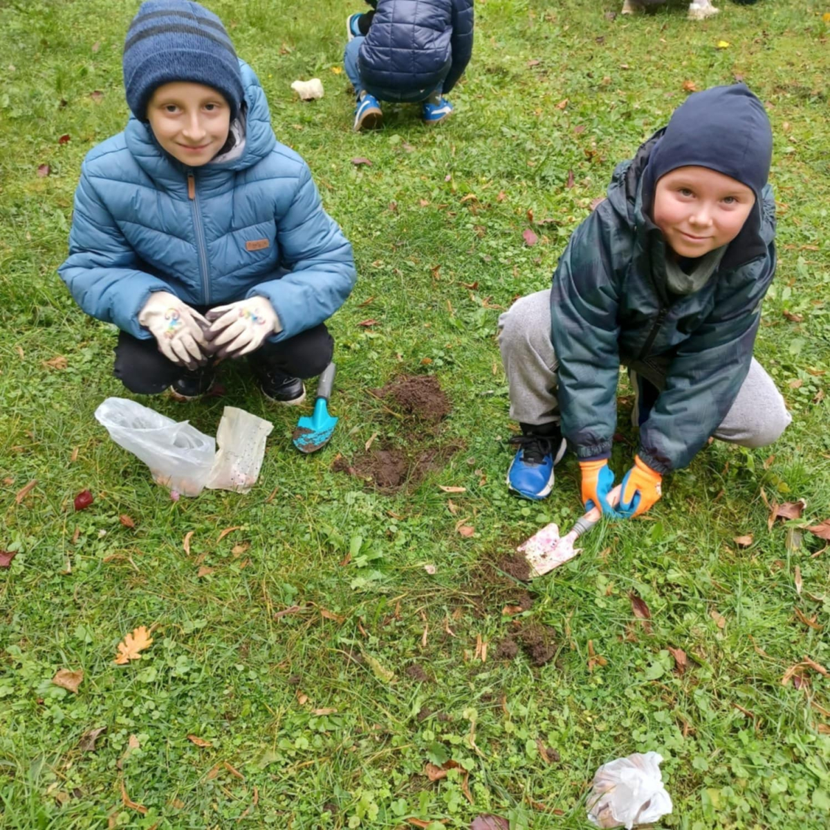 Uczniowie klasy 3a nie boją się zabrudzić rąk, gdy chodzi o dbanie o szkolny ogród! Podczas ostatnich zajęć dzieci z zapałem sadziły cebulki krokusów i tulipanów, które już wiosną ozdobią szkolne rabaty kolorowym dywanem kwiatów.