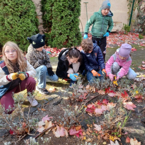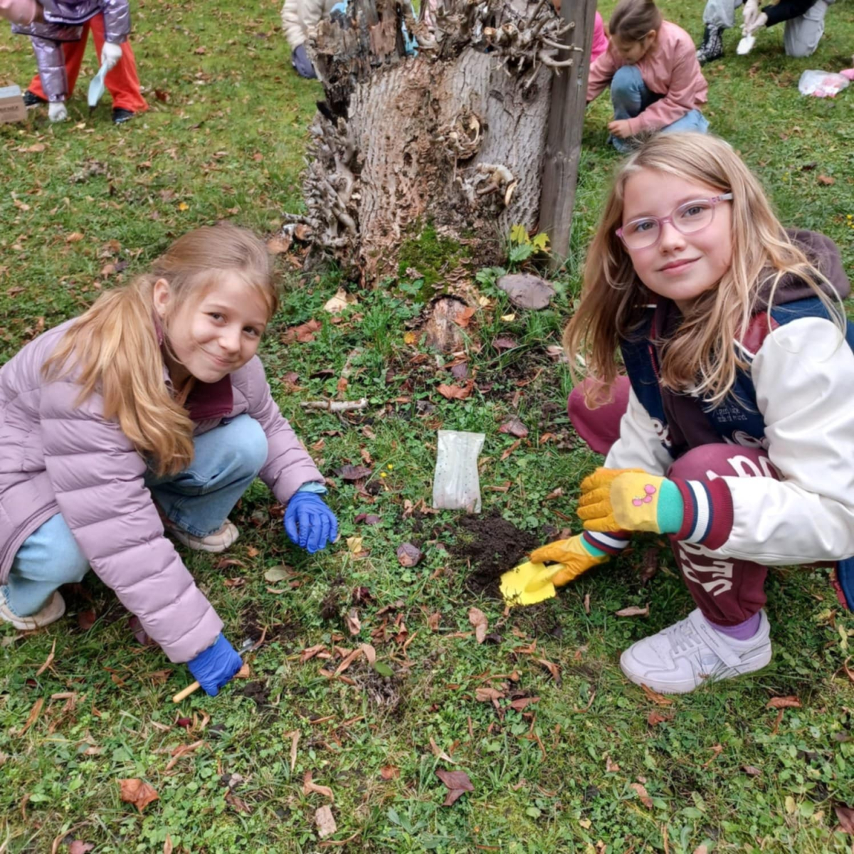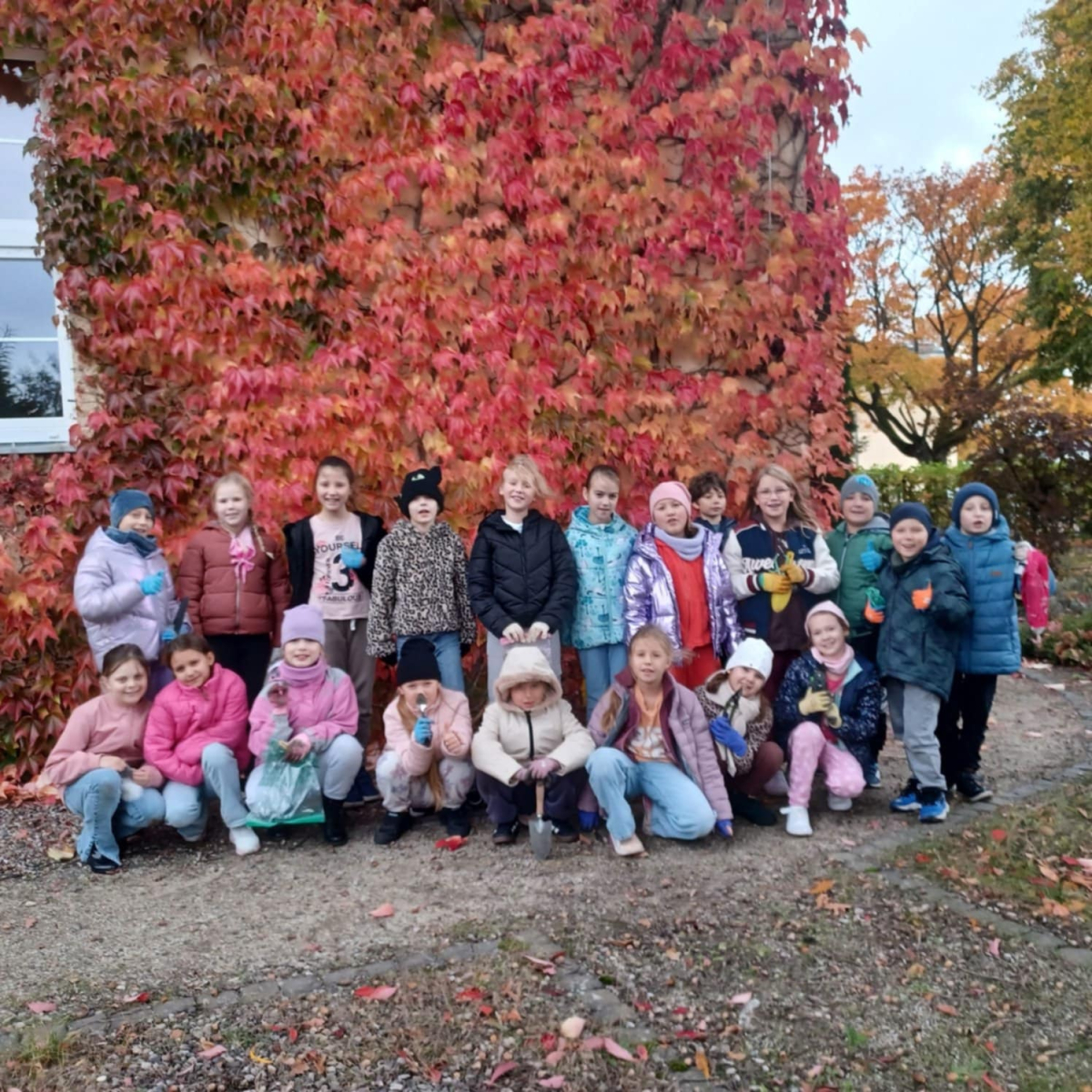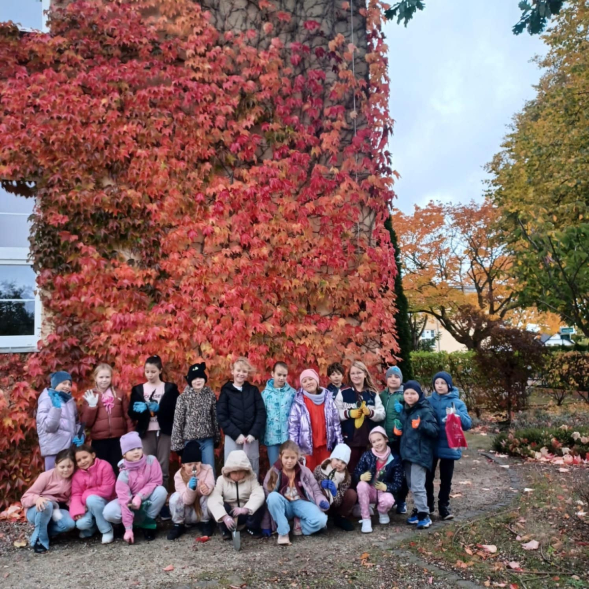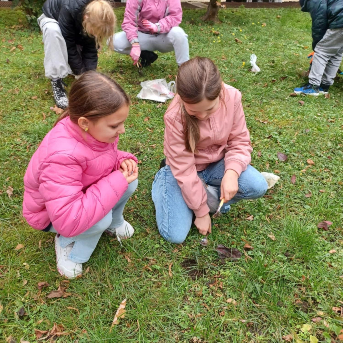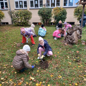 Uczniowie klasy 3a nie boją się zabrudzić rąk, gdy chodzi o dbanie o szkolny ogród! Podczas ostatnich zajęć dzieci z zapałem sadziły cebulki krokusów i tulipanów, które już wiosną ozdobią szkolne rabaty kolorowym dywanem kwiatów.
