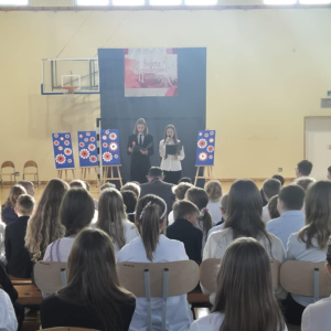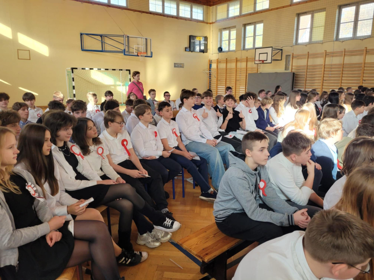 5 listopada uczniowie naszej szkoły uczestniczyli w Koncercie Piosenki Patriotycznej. Koncert został zorganizowany z okazji 107. rocznicy odzyskania przez Polskę niepodległości. Usłyszeliśmy słowa i melodie, które towarzyszyły nam w różnych okresach naszej historii. O XIX wieku i czasach zaborów przypomniała „Etiuda rewolucyjna” Fryderyka Chopina. Do I wojny światowej nawiązywał prawdziwy przebój tamtych czasów – „Ułani ” i „Rozkwitały pąki białych róż”. Z okresu międzywojennego pochodziła piosenka „Serce w plecaku”, a o Powstaniu Warszawskim przypomniał wzruszający utwór „Dziś idę walczyć mamo” oraz „Dziewczyna z granatem”. W programie koncertu znalazły się również: wzruszający „Biały krzyż” z repertuaru Czerwonych Gitar oraz „Mury” Jacka Kaczmarskiego. Swój talent muzyczny zaprezentowali soliści: Natalia Ogrodowczyk z kl. 4B, Aleksandra Tyszka z kl. 6B,
