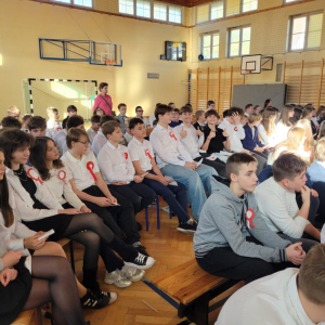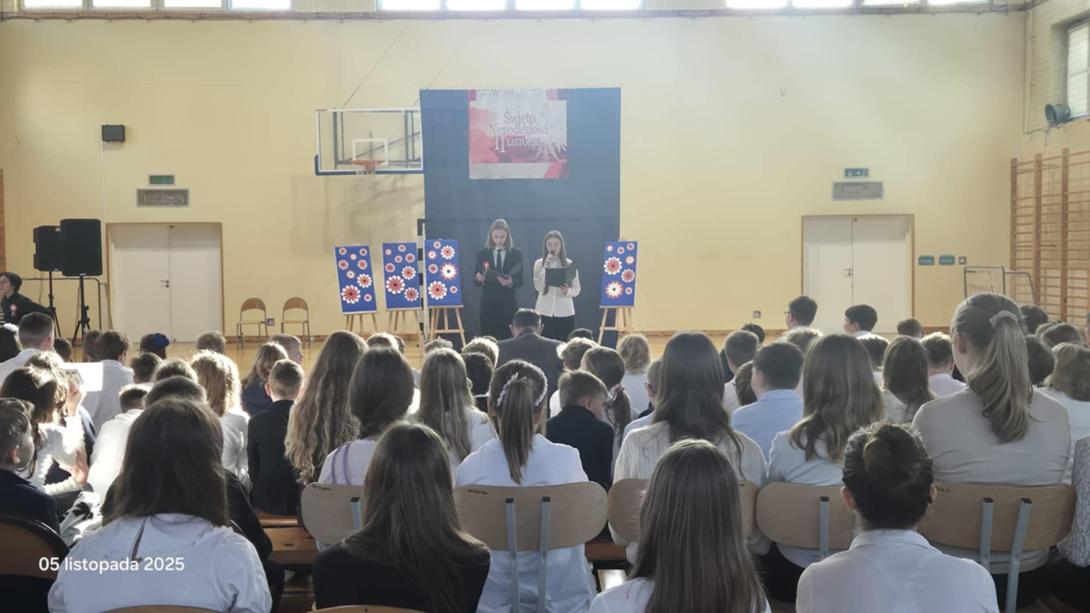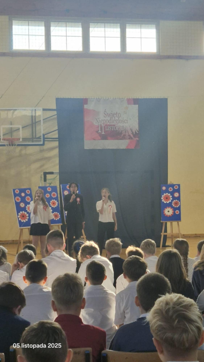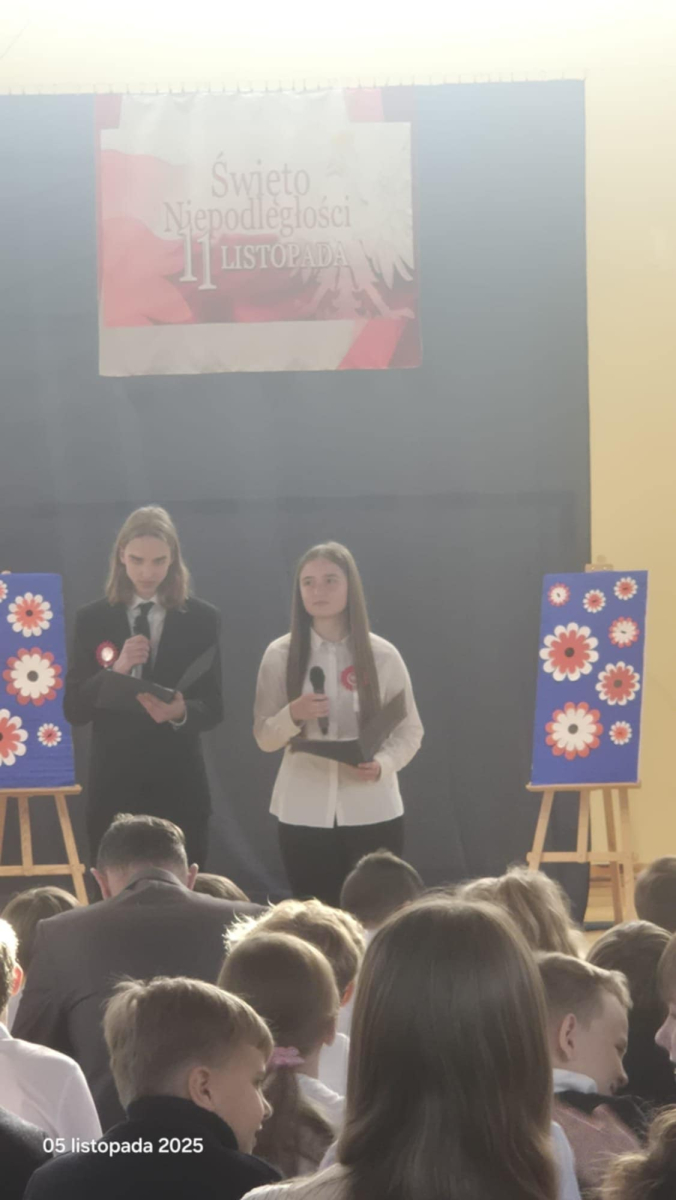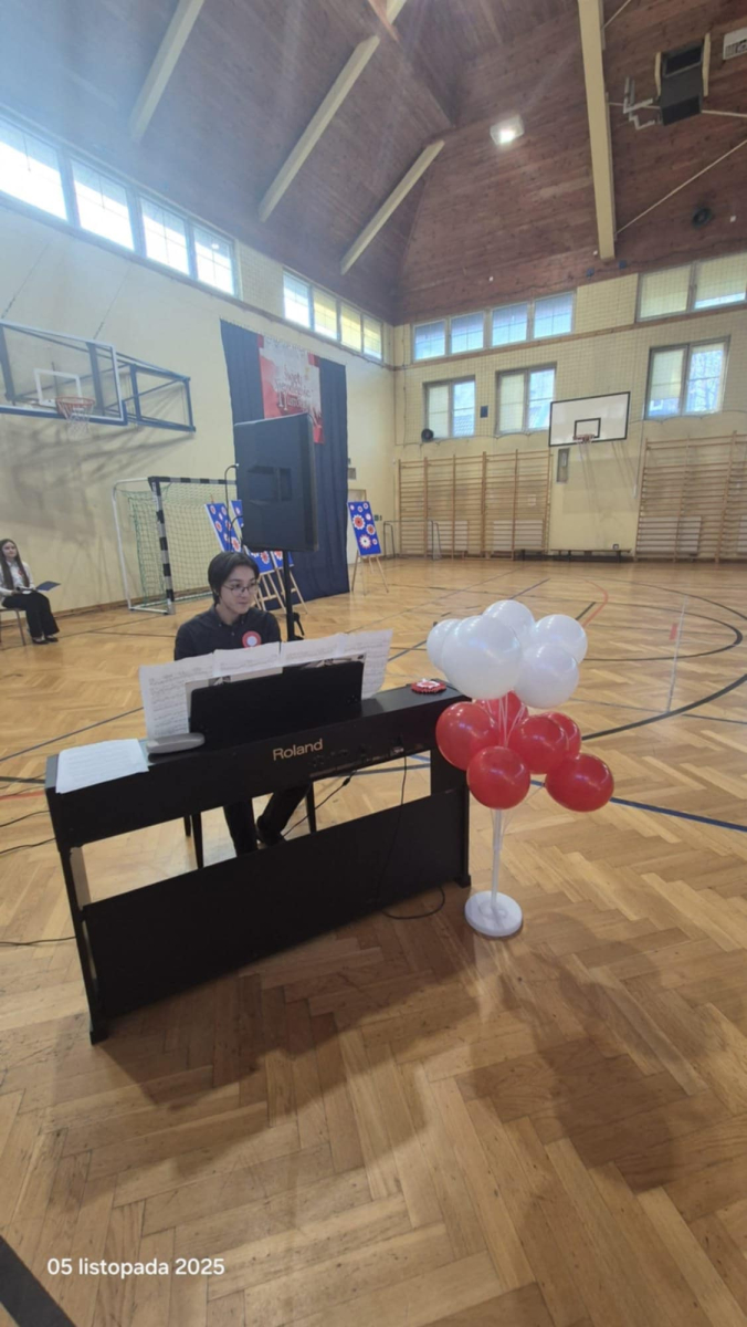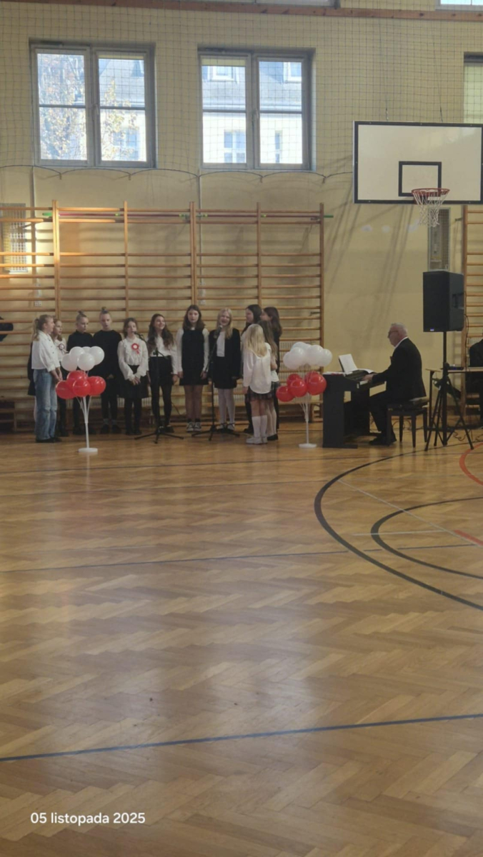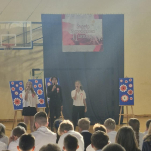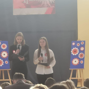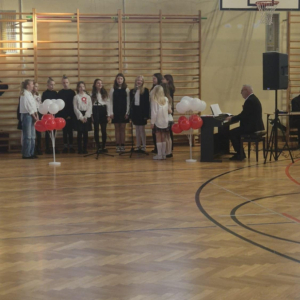Elwira Shynhur z kl. 8B oraz Leszek Dolniak z kl. 7B. Towarzyszył im chór dziewczęcy z kl. 5C. Czynny udział w koncercie wzięła także publiczność. Na takim wydarzeniu nie mogło zabraknąć „Pierwszej Brygady”, którą z werwą zaśpiewali wszyscy widzowie. Muzyczne świętowanie zakończyło wspólne wykonanie piosenki „Wolność” zespołu „Chłopcy z Placu Broni”.