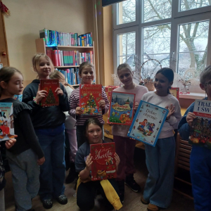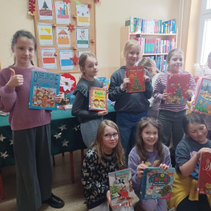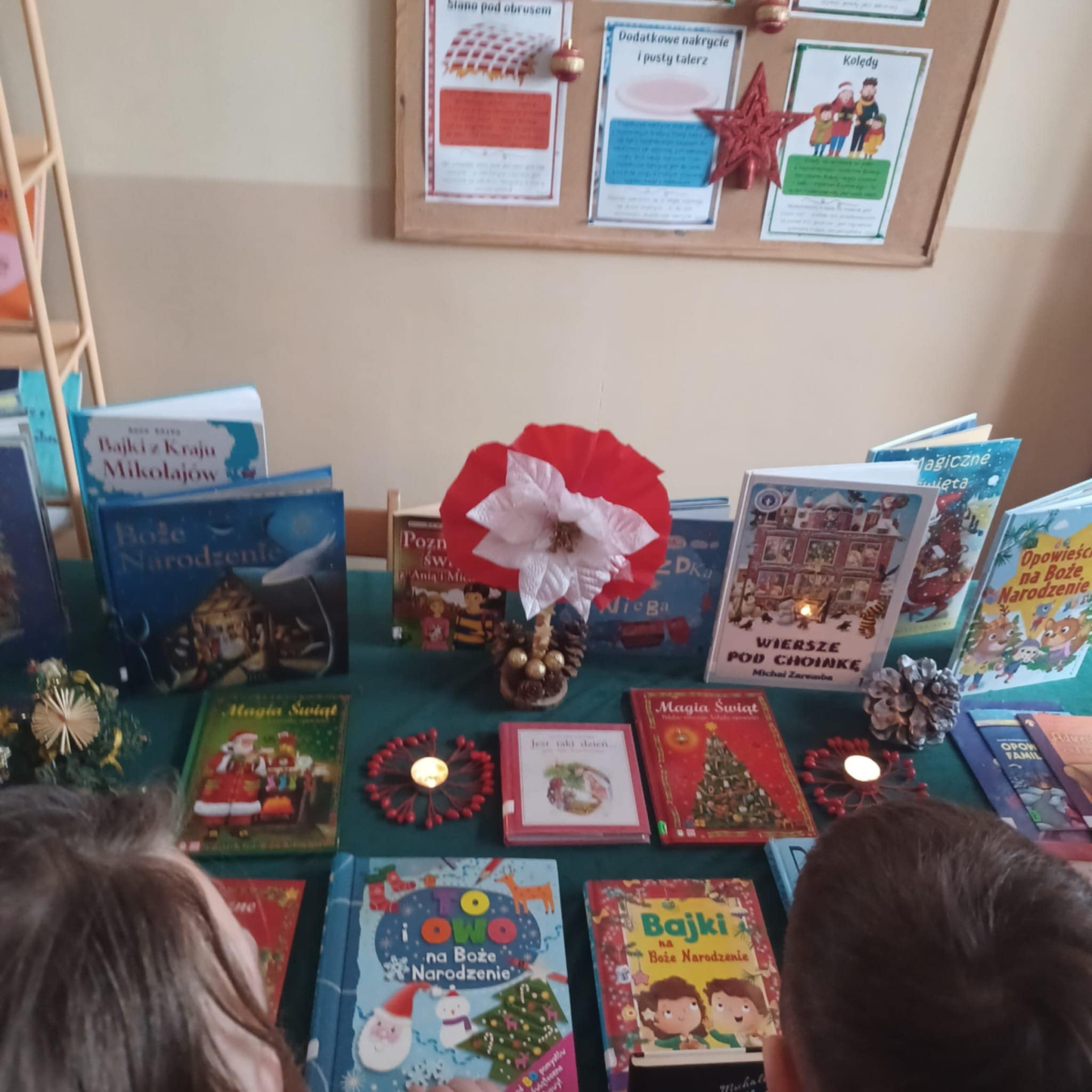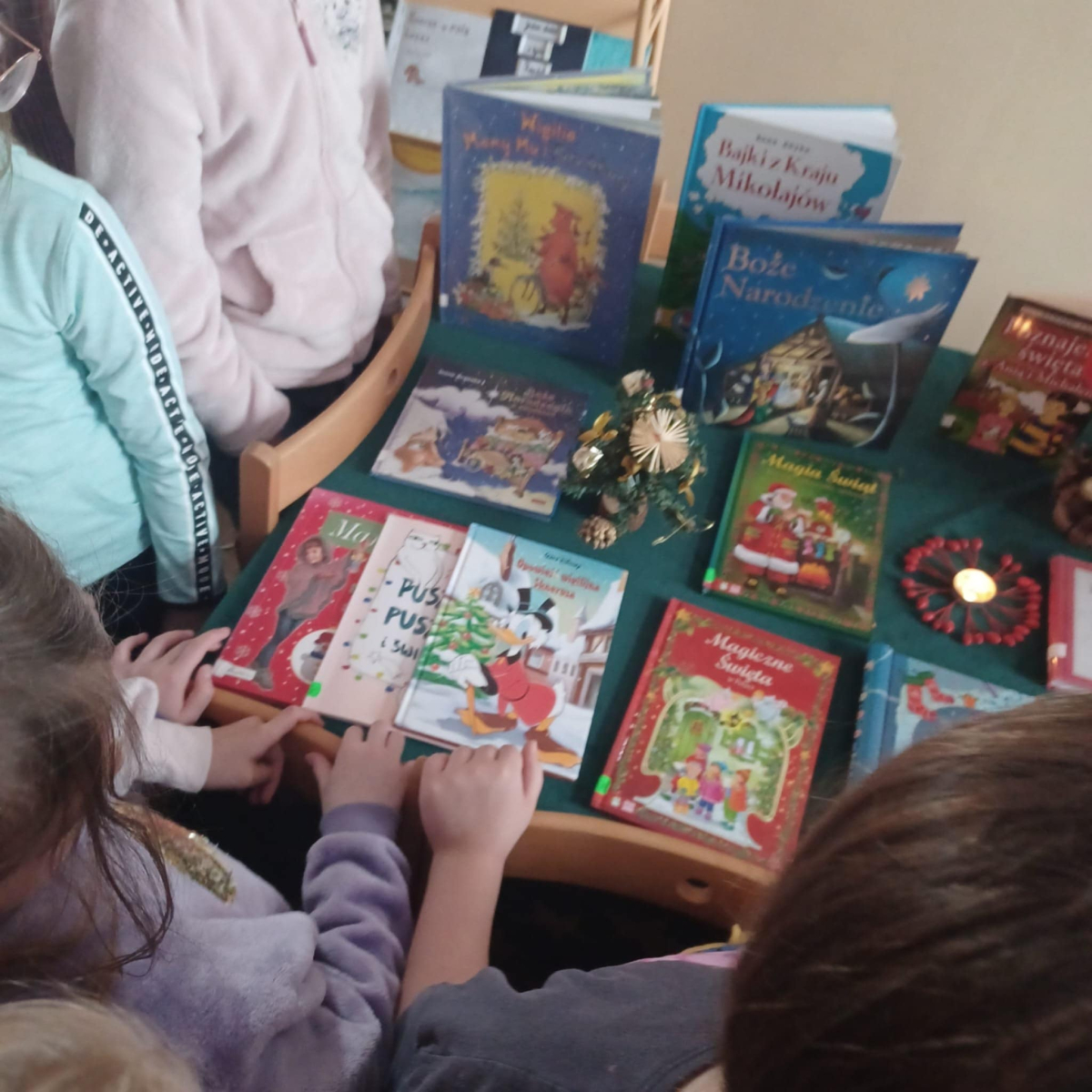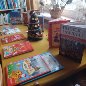 Podczas spotkania zaprezentowane zostały również nowe woluminy, które wzbogaciły księgozbiór biblioteki. Wśród nich znalazły się książki o tematyce świątecznej, zimowe opowieści oraz inne ciekawe propozycje dla młodych czytelników.