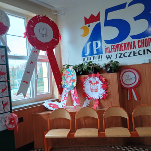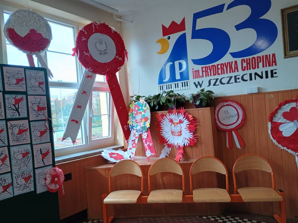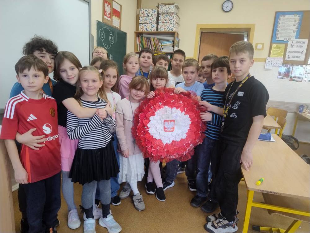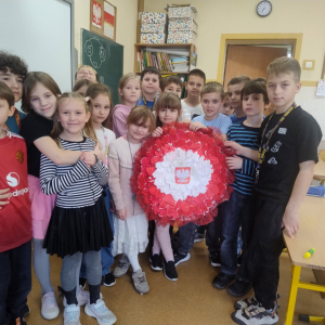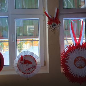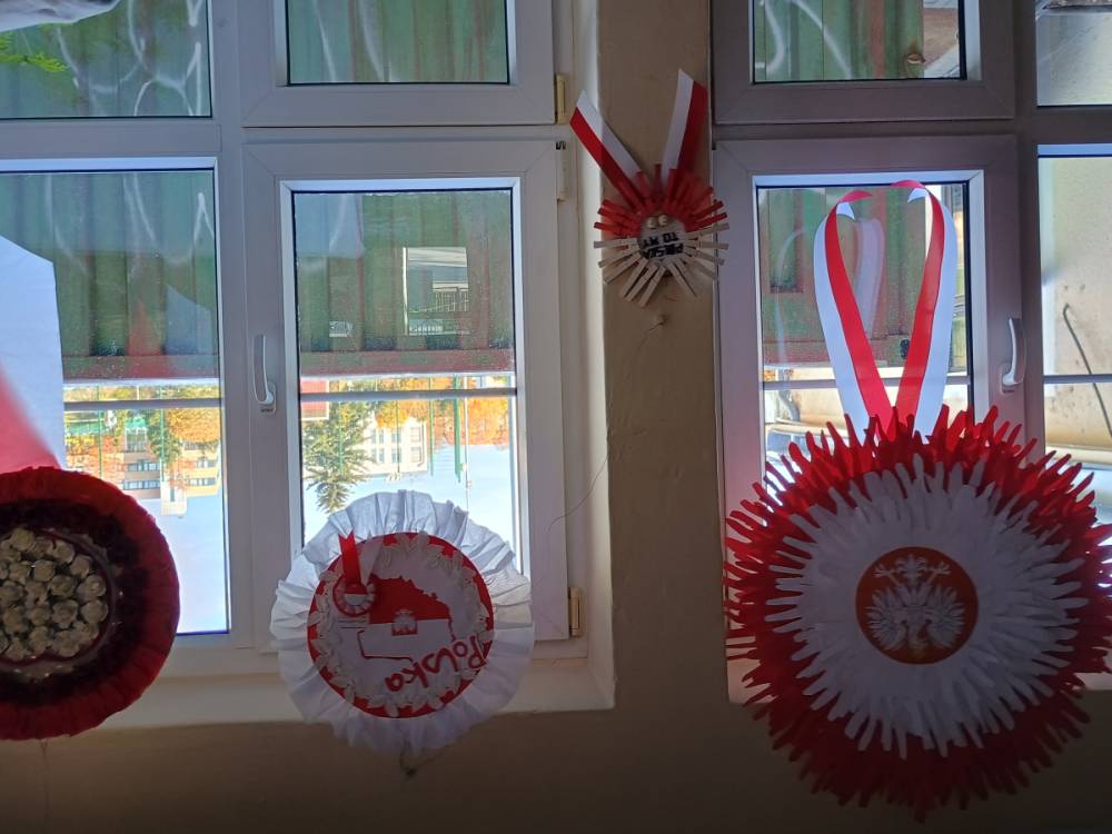 Dzieci przygotowały kokardy narodowe dla siebie, ale także na konkurs. Klasy 0-3 stworzyły mapę Polski z różnych elementów.