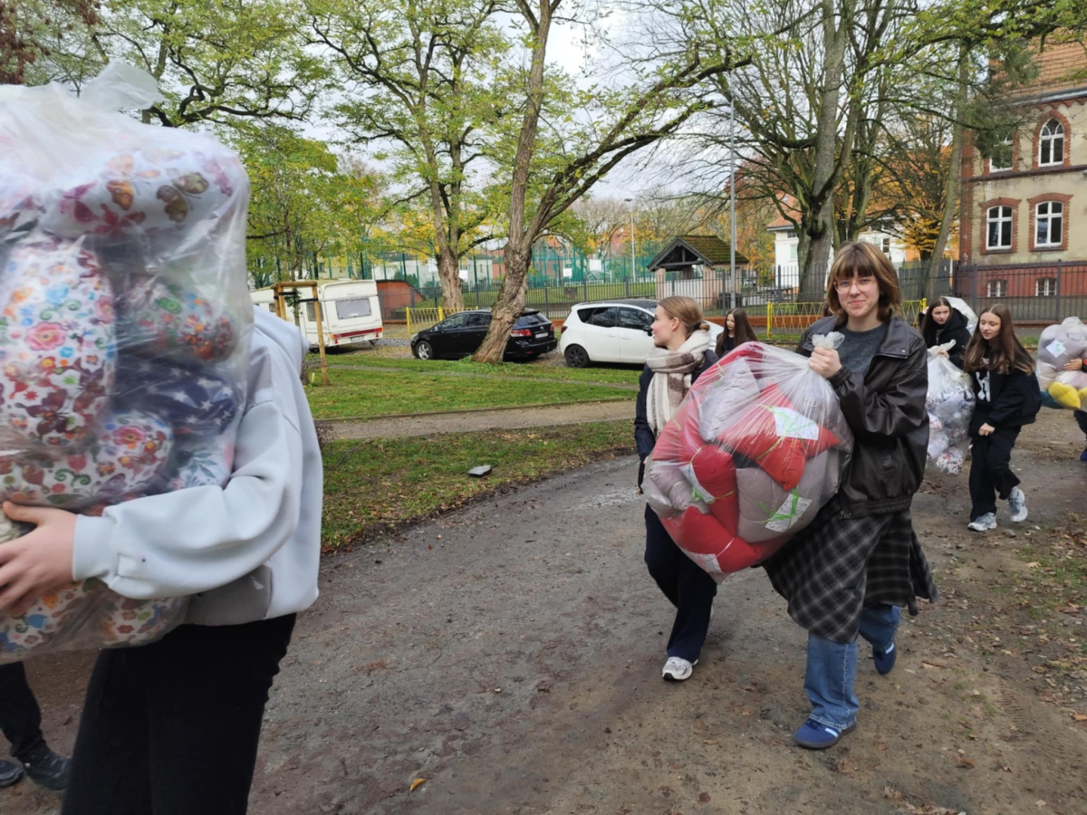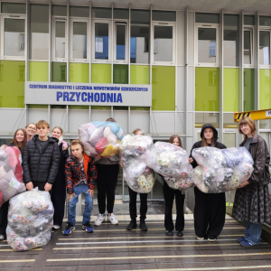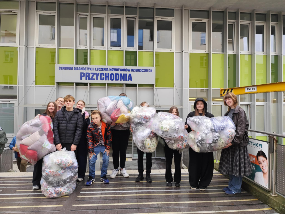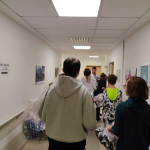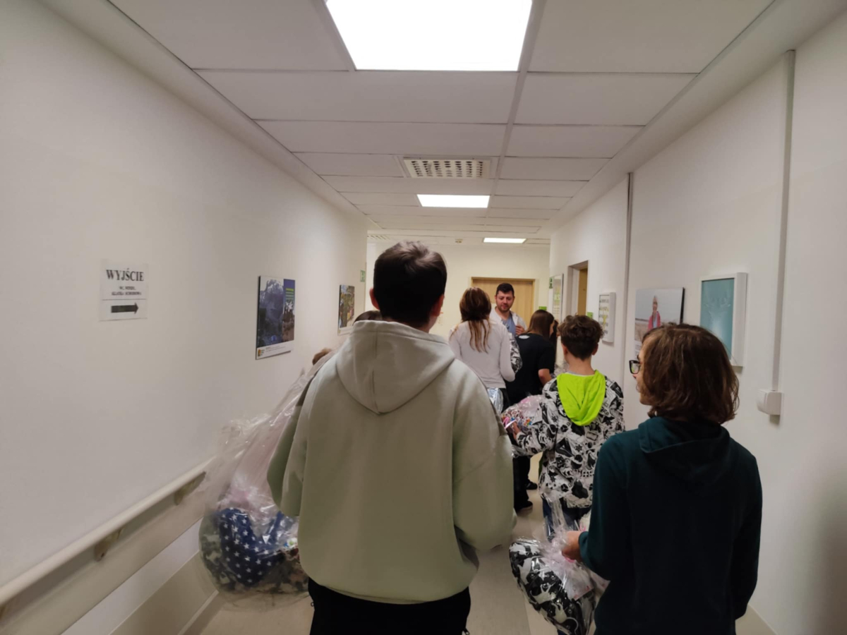 Podczas wizyty w szpitalu uczniowie wysłuchali informacji o specyfice chorób hematologicznych, poznając codzienność pacjentów i pracowników oddziału. Następnie z uśmiechem i życzliwością rozdali poduszki pacjentom na oddziale otwartym, przekazując im ciepło, wsparcie i dobre myśli.