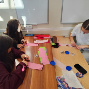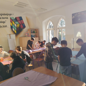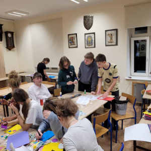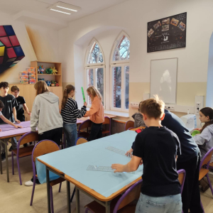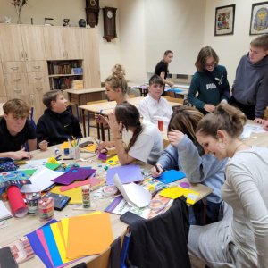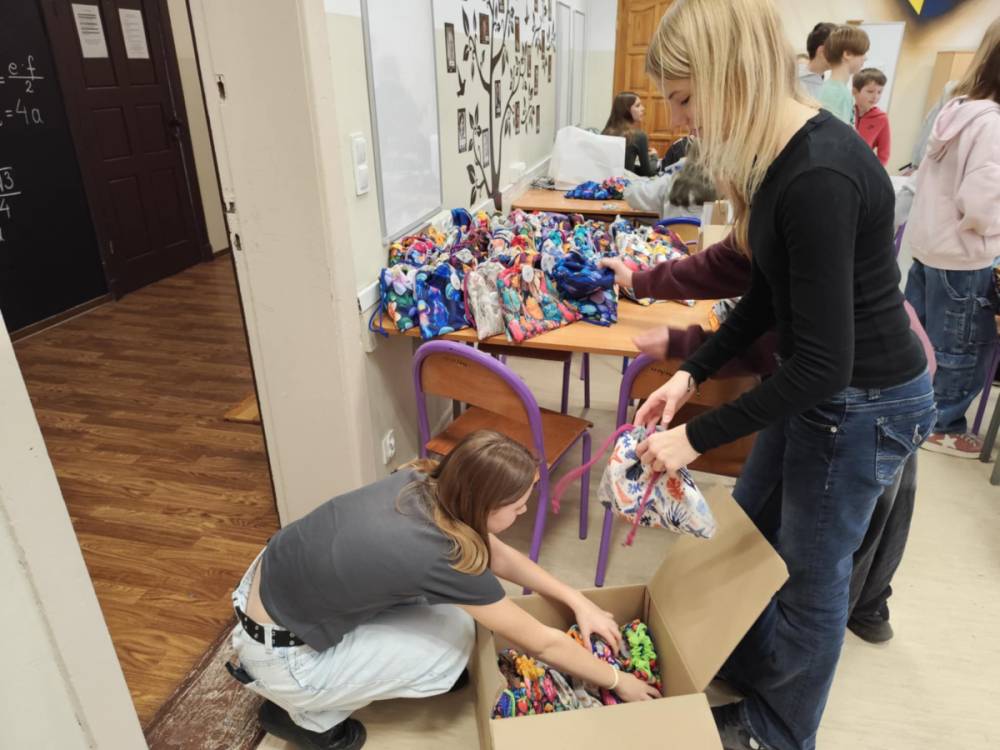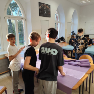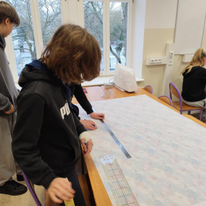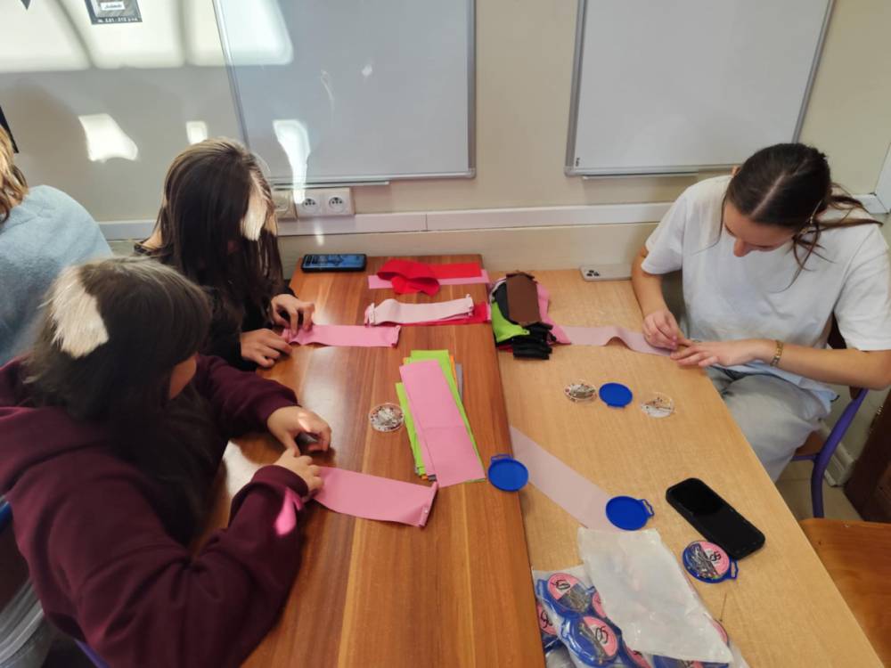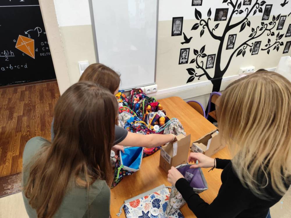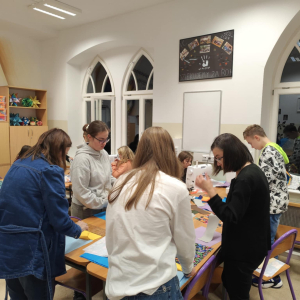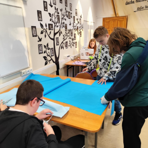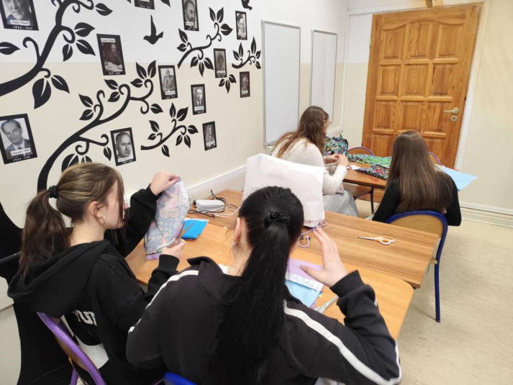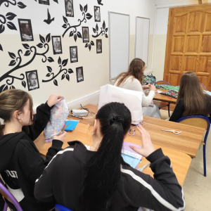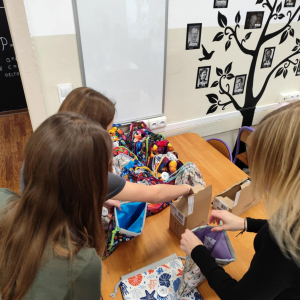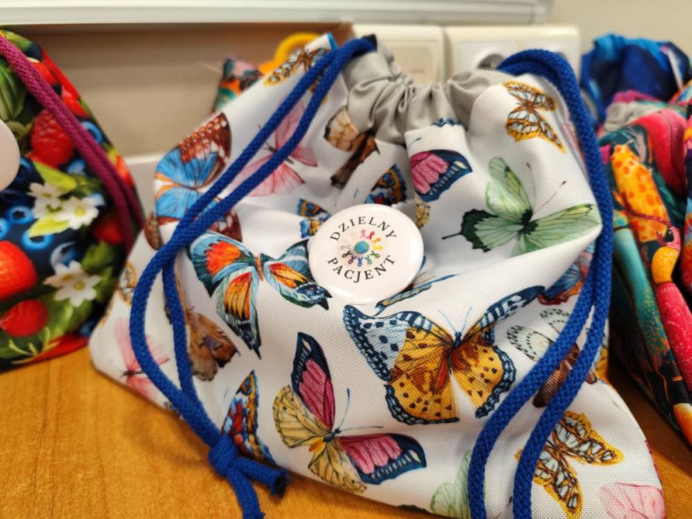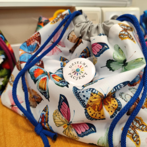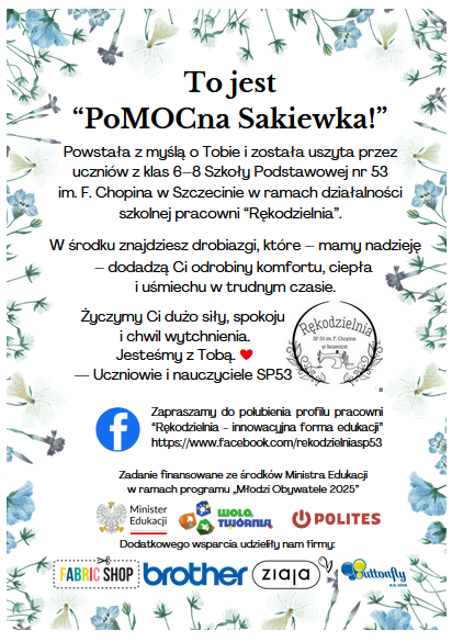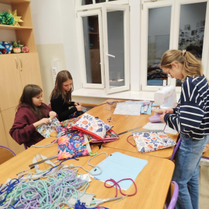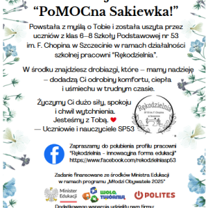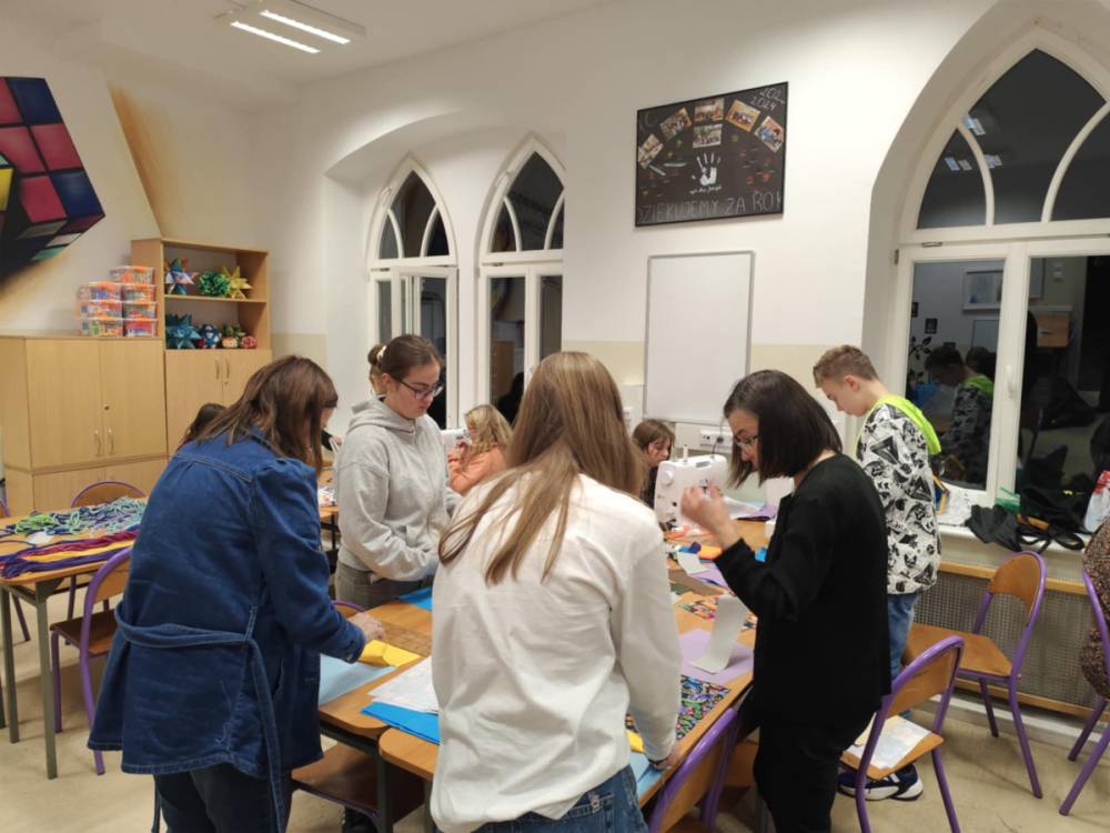 Każda sakiewka powstała dzięki wspólnej pracy uczniów, którzy z ogromnym zaangażowaniem mierzyli, a następnie kroili materiały, szyli na maszynach, wiązali troczki i dbali o każdy detal. W woreczkach znajdą się drobne, przydatne upominki, które mają przynieść odrobinę ciepła i otuchy osobom w trudnej sytuacji zdrowotnej. Każda sakiewka została również ozdobiona tematyczną przypinką. Dodatkowo uczniowie klasy 8A przygotowywali w tym czasie kartki świąteczne, które dołączymy do woreczków.