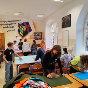 W miniony piątek i poniedziałek (21-24.11) uczniowie naszej szkoły pod opieką p. A. Jędrzejak, p. A. Szczęsnej, p. K. Szostak, p. R. Perz, p. K. Reichert i p. M. Lisak wzięli udział w wyjątkowej akcji szycia PoMOCnych Sakiewek w pracowni Rękodzielnia. Przez kilka godzin wypełnionych pracą, rozmowami i wzajemną pomocą udało nam się osiągnąć imponujący efekt — uszyliśmy aż 100 materiałowych woreczków, które wkrótce zostaną przekazane pacjentom szpitala onkologicznego.