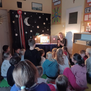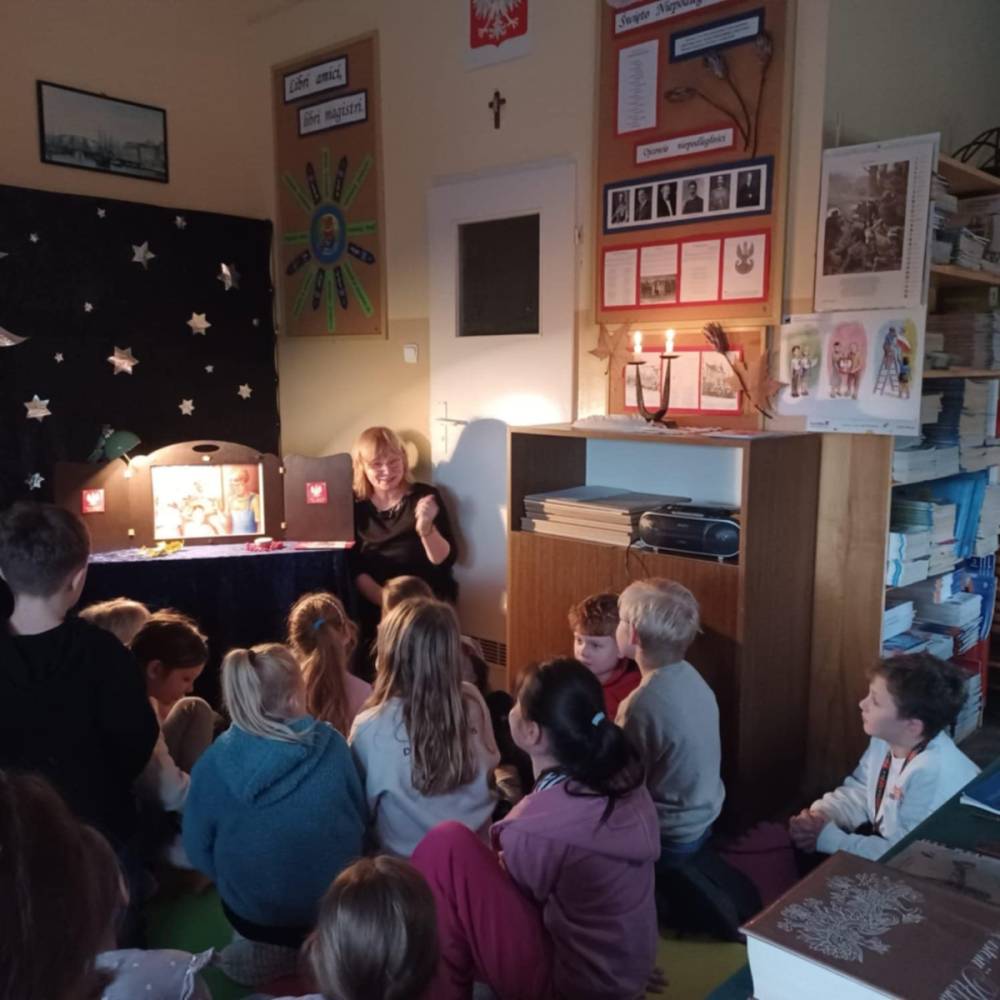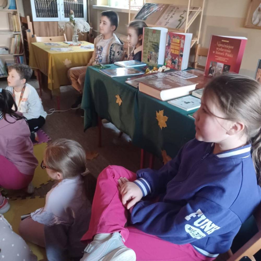 Klasa 3a wzięła udział w prelekcji poświęconej odzyskaniu przez Polskę niepodległości. Uczniowie poznali najważniejsze wydarzenia tamtego okresu oraz bohaterów, dzięki którym nasza ojczyzna mogła powrócić na mapę Europy. To była cenna lekcja historii i patriotyzmu. Spotkanie poprowadziła p. Małgorzata Jagiełło opiekująca się szkolną biblioteką.