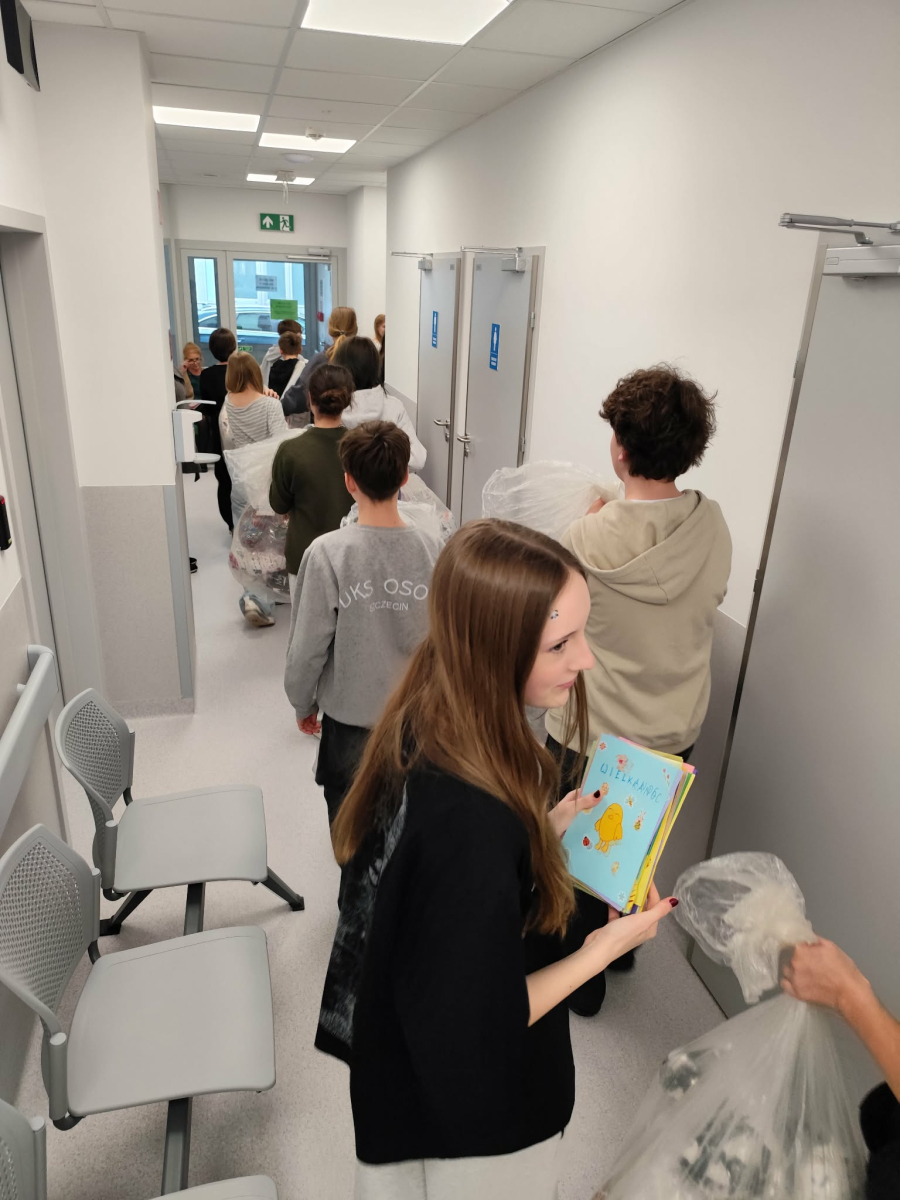 Nasi uczniowie osobiście dostarczyli aż 132 poduszki do Uniwersyteckiego Szpitala Klinicznego nr 1, sprawiając pacjentom niesamowitą niespodziankę jeszcze przed świętami. Do każdej poduszki została dołączona własnoręcznie wykonana kartka z życzeniami, co wywołało na korytarzach wiele radości i autentycznych wzruszeń. Dodatkowo przekazaliśmy też 100 breloczków w kształcie skarpetek dla Maluszków z Kliniki Perinatologii, Położnictwa i Ginekologii w Policach. Nasza misja dzielenia się dobrem objęła także Zachodniopomorskie Centrum Onkologii, gdzie trafiło kolejne 100 kolorowych poduszek, które pomagają w rehabilitacji pacjentkom po mastektomii i wycięciu węzłów chłonnych.