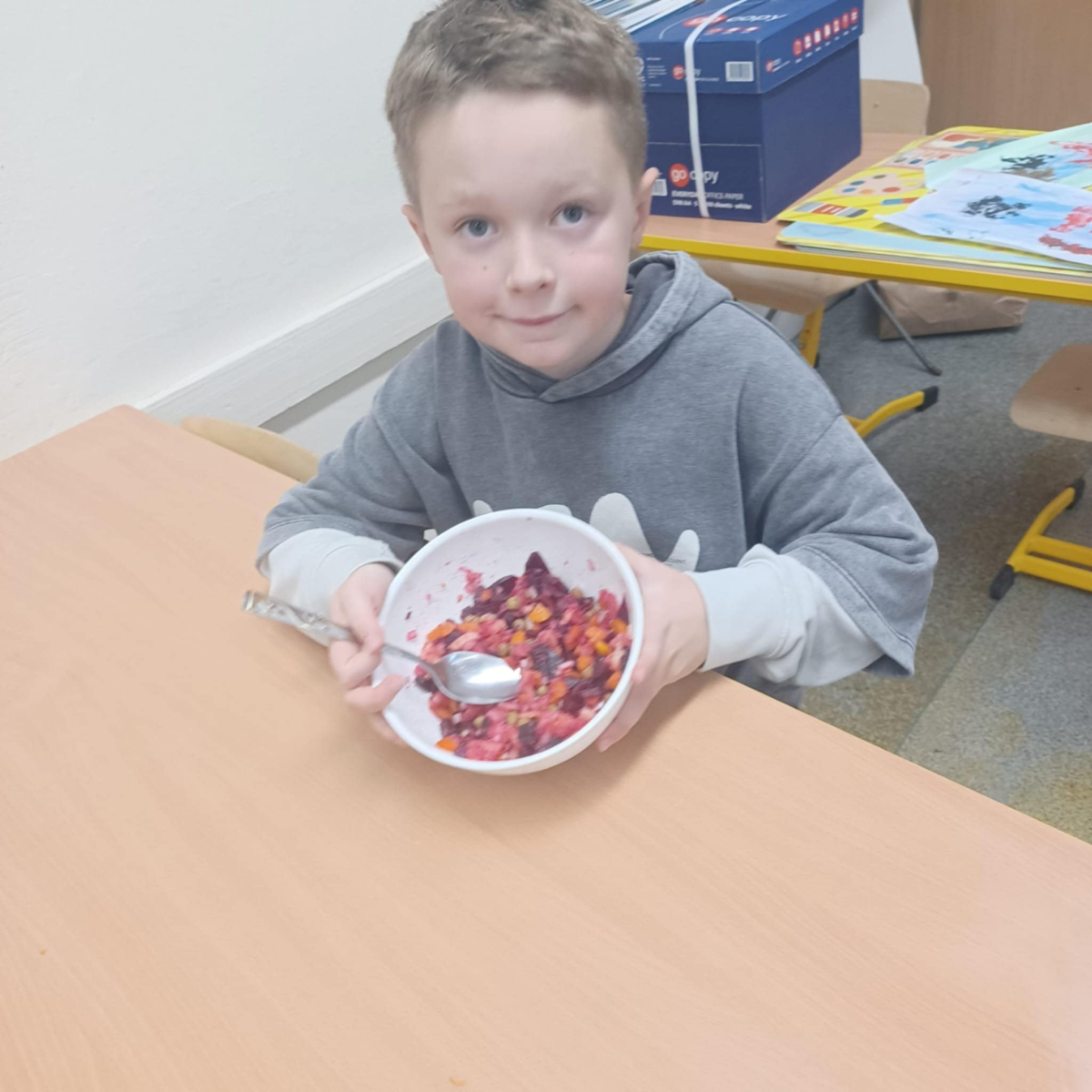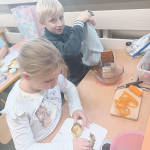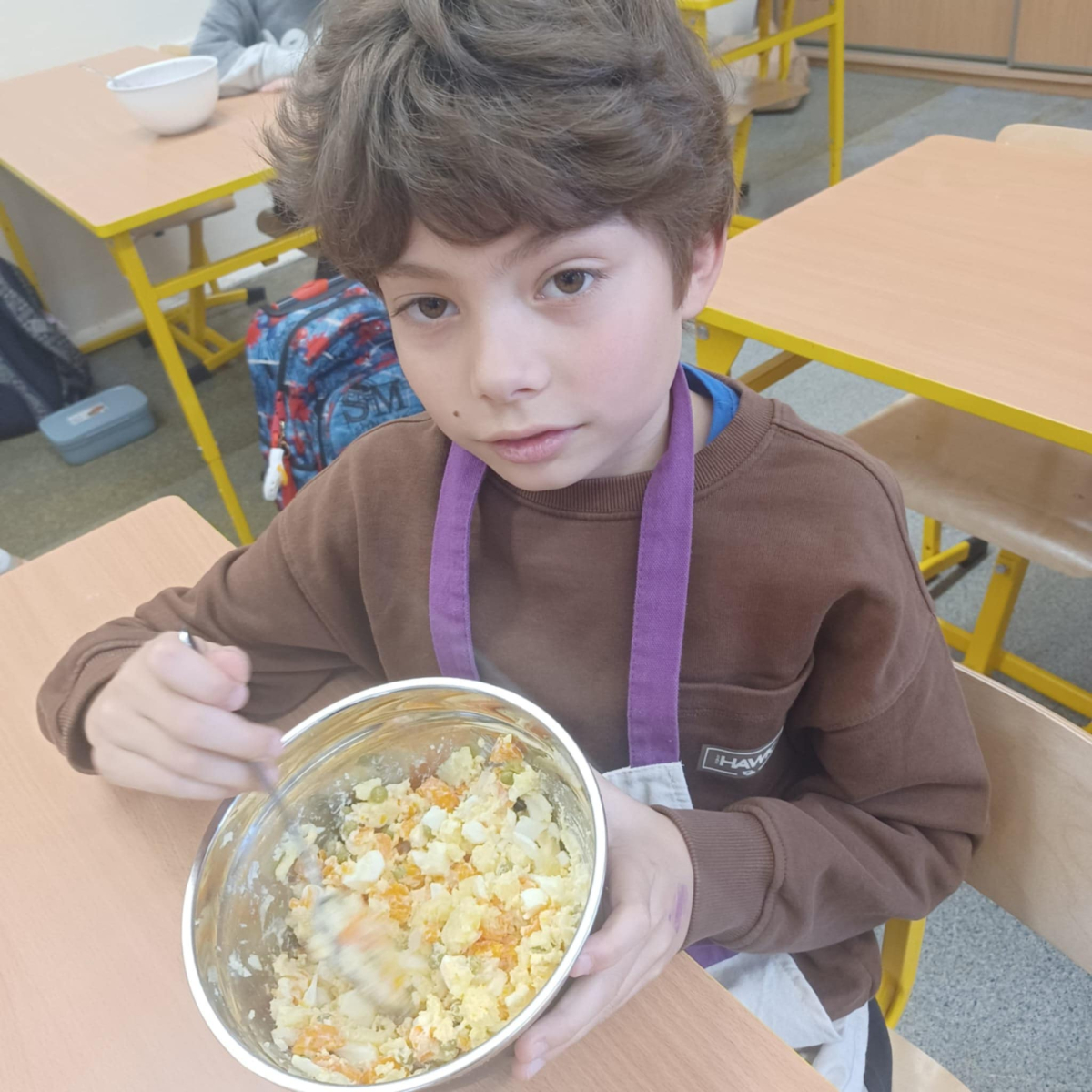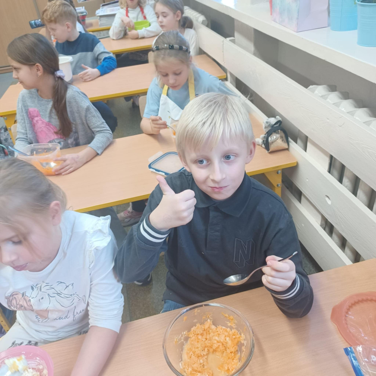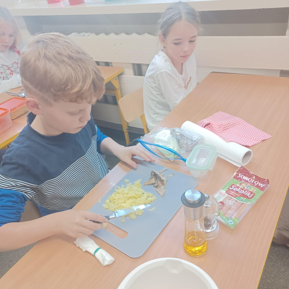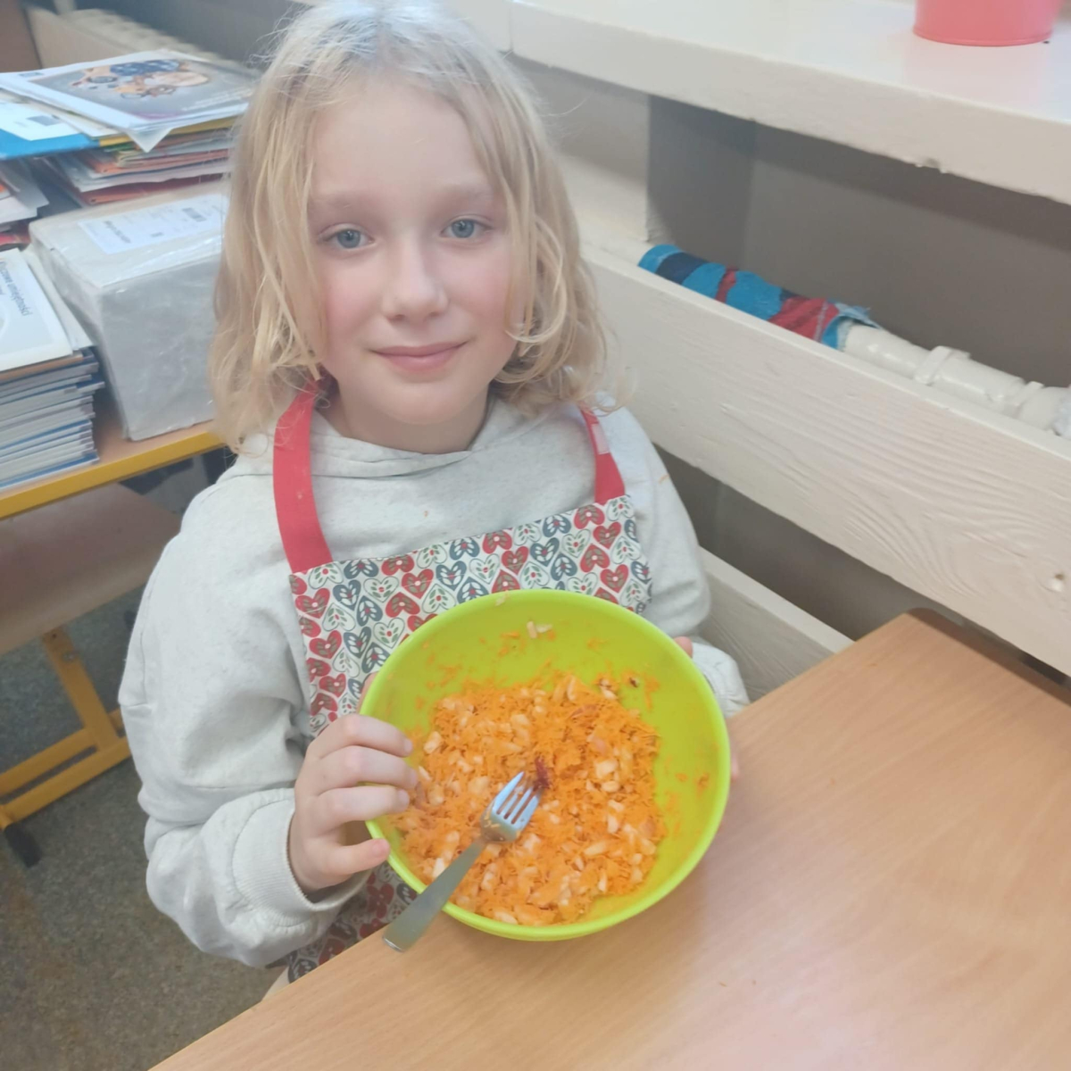 To jednak nie koniec smakowitych atrakcji! Podczas zajęć kulinarnych uczniowie przygotowali zdrowe sałatki i surówki warzywne, ucząc się, jak w prosty sposób można tworzyć kolorowe, pełne witamin potrawy.