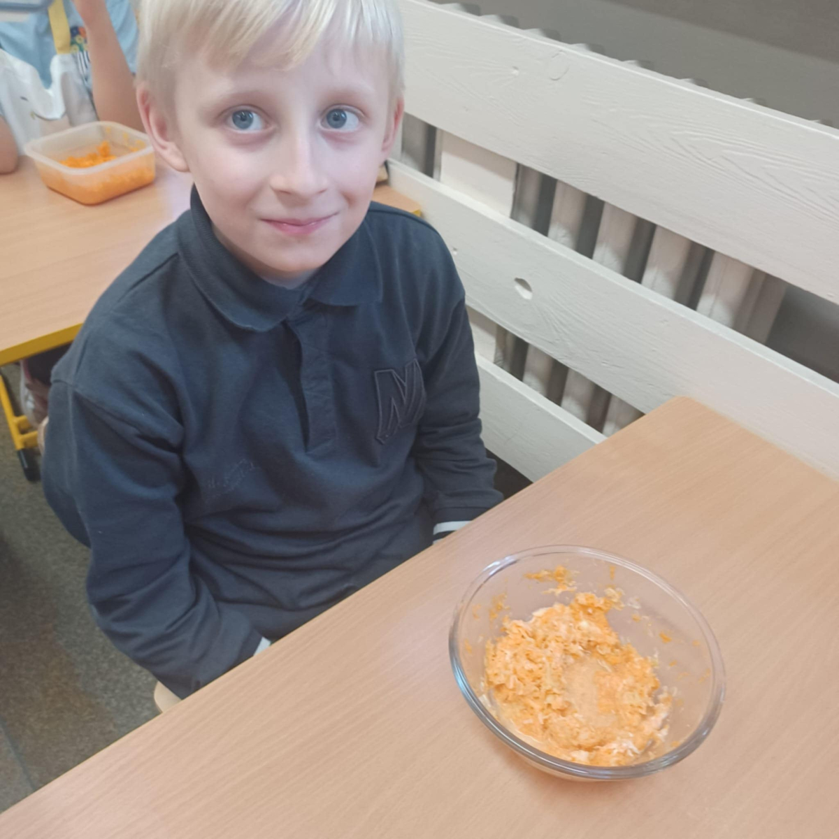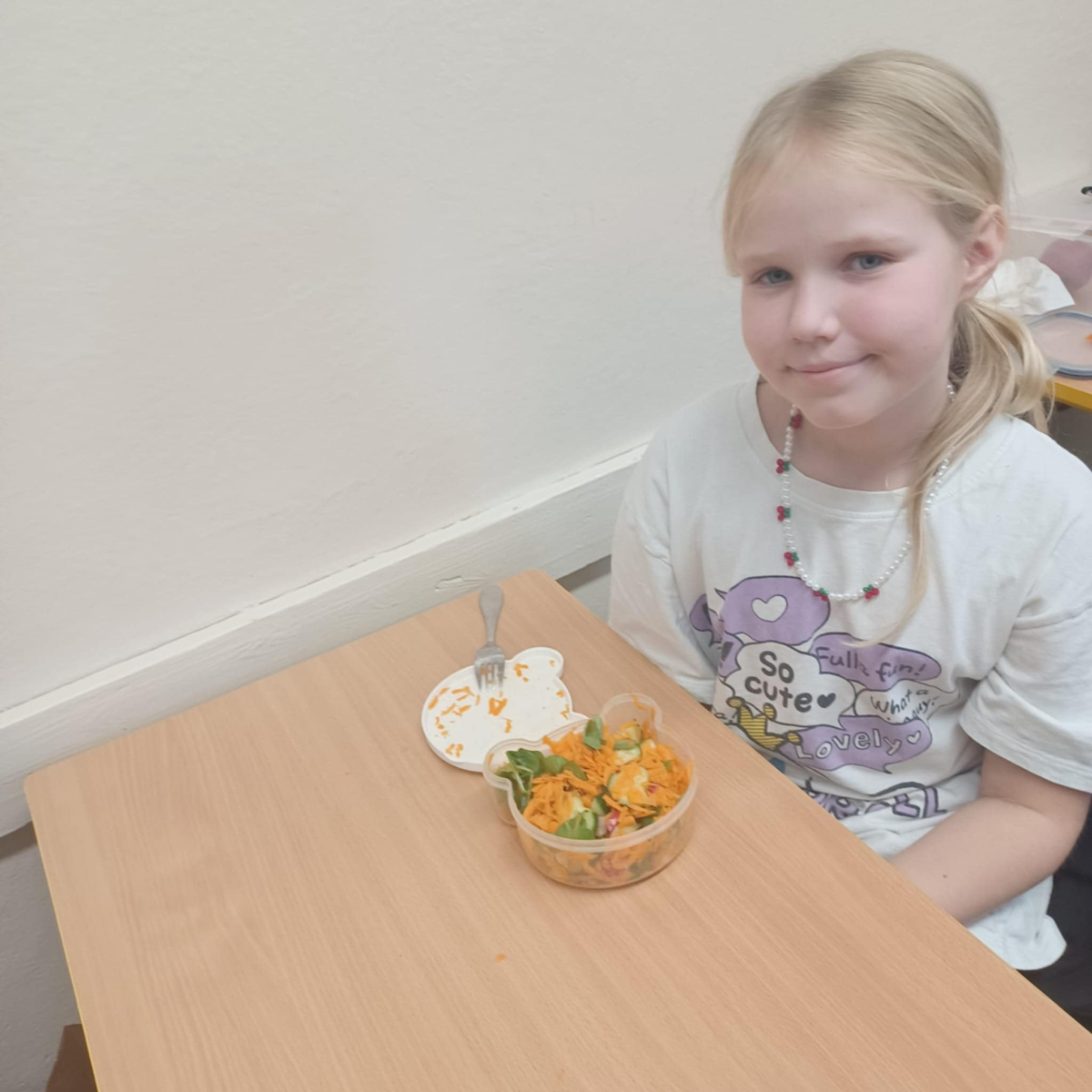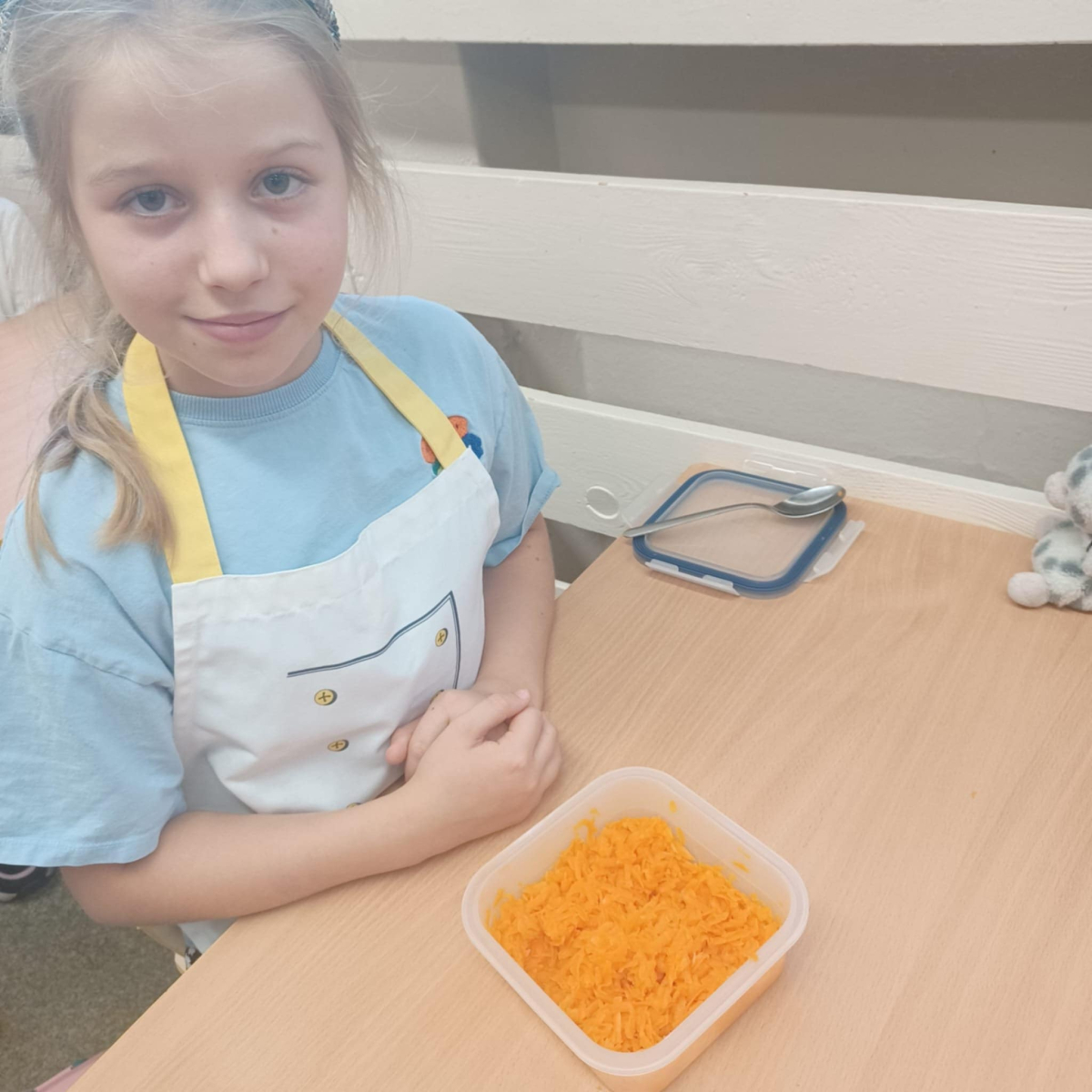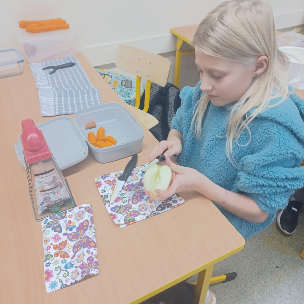To jednak nie koniec smakowitych atrakcji! Podczas zajęć kulinarnych uczniowie przygotowali zdrowe sałatki i surówki warzywne, ucząc się, jak w prosty sposób można tworzyć kolorowe, pełne witamin potrawy.