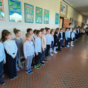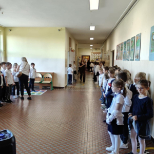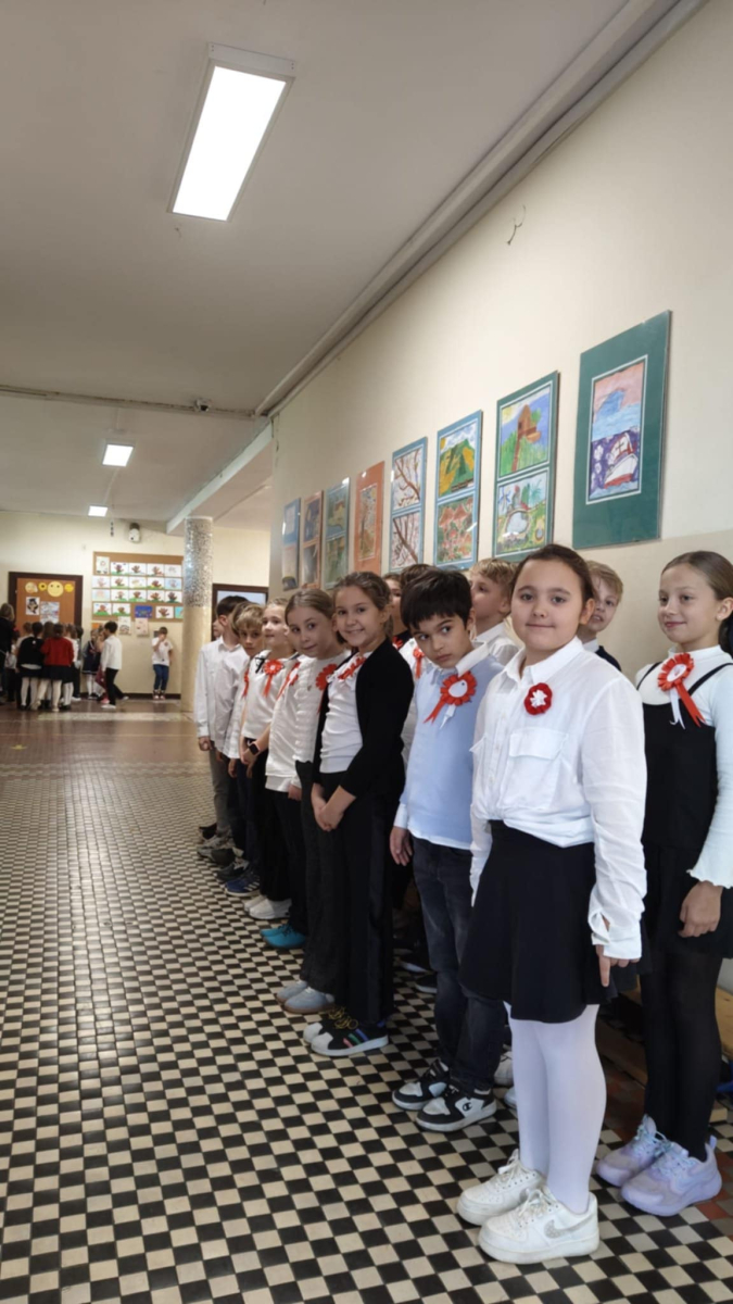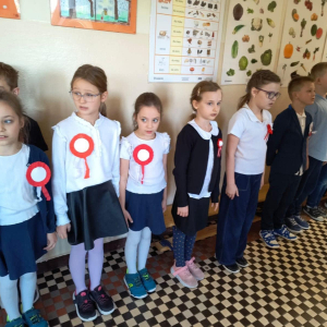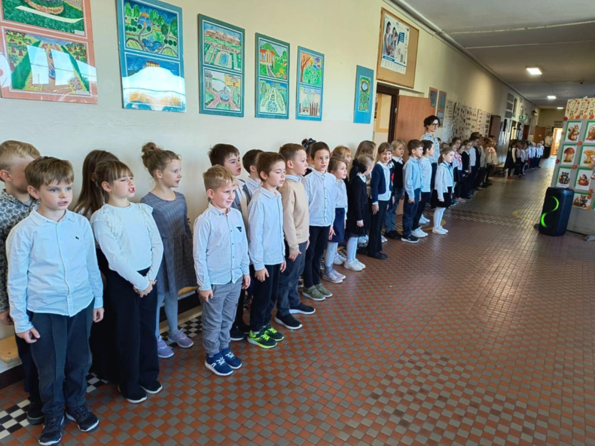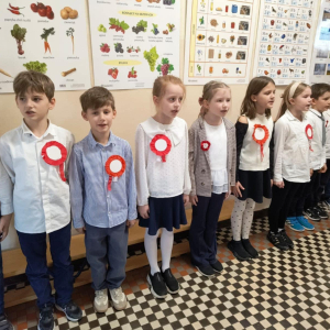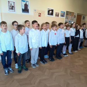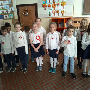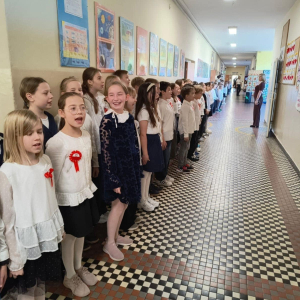 7 listopada uczniowie naszej szkoły wzięli udział w corocznej ogólnopolskiej akcji „Szkoła do hymnu”. Punktualnie o godz. 11.11 w murach obu budynków szkolnych zabrzmiała melodia „Mazurka Dąbrowskiego” i śpiew całej społeczności szkolnej.