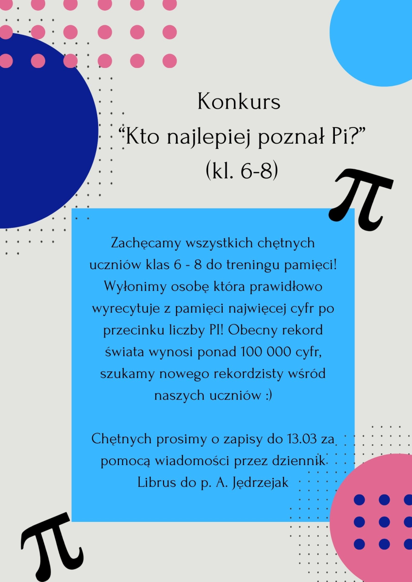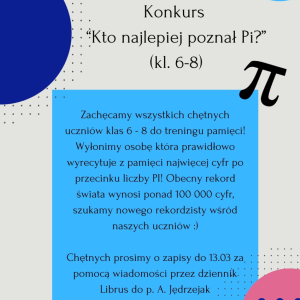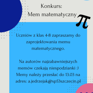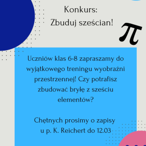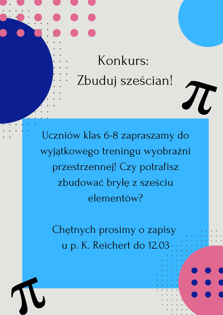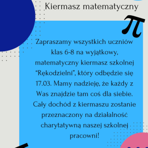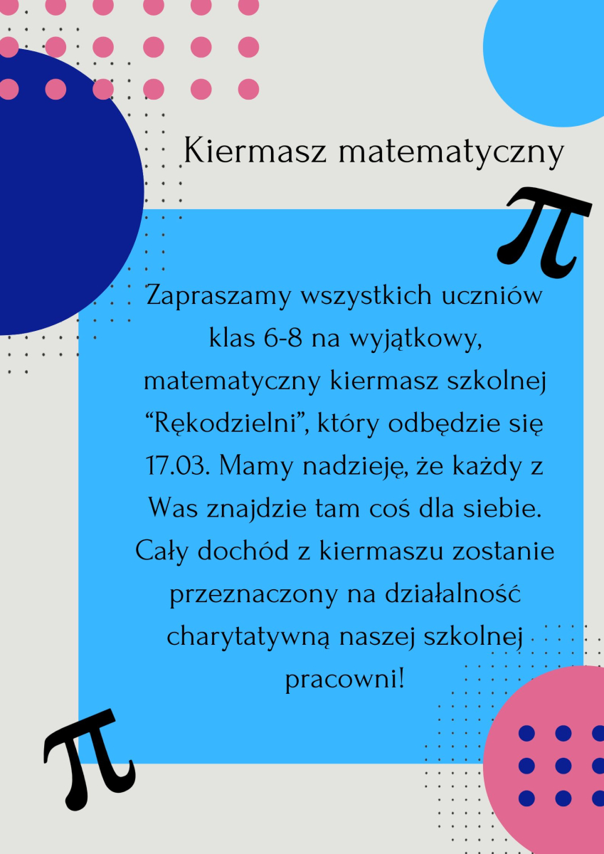 W dniach 12.03–20.03.2026 r. w naszej szkole odbędzie się wyjątkowe wydarzenie – Tydzień Matematyczny. Przed nami mnóstwo konkursów, wyzwań i atrakcji, które pokażą, że matematyka może być ciekawa, kreatywna i pełna nieskończonych możliwości!