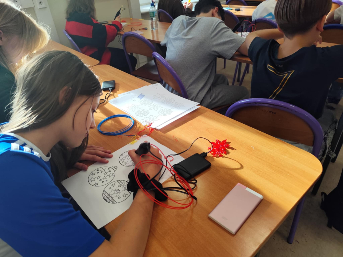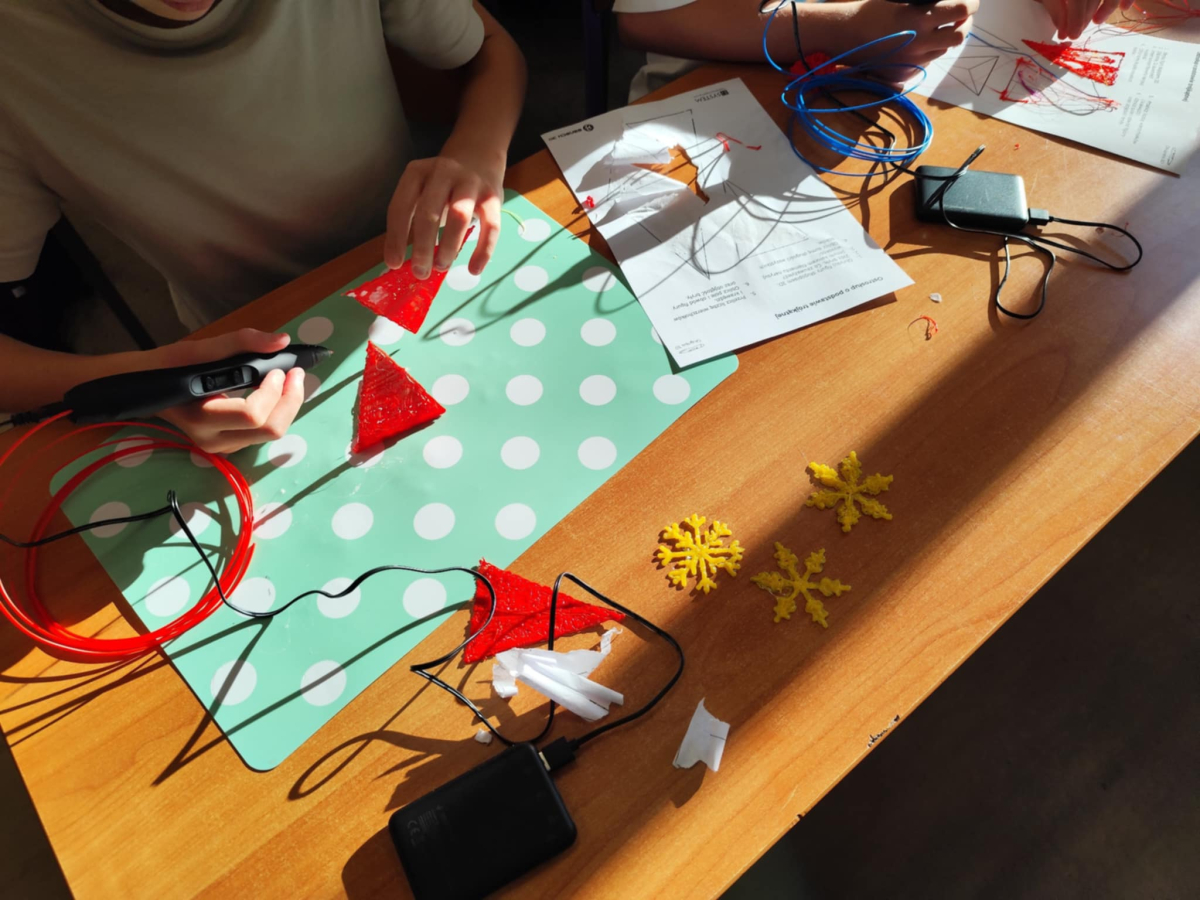 Podczas zajęć uczniowie uczyli się obsługi długopisów, poznawali zasady bezpiecznej pracy oraz wykonywali pierwsze przestrzenne projekty. Pomysłowość i zaangażowanie uczestników sprawiły, że efekty były naprawdę imponujące!