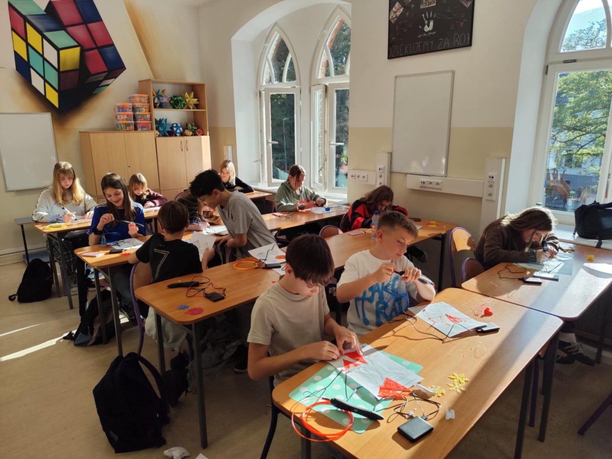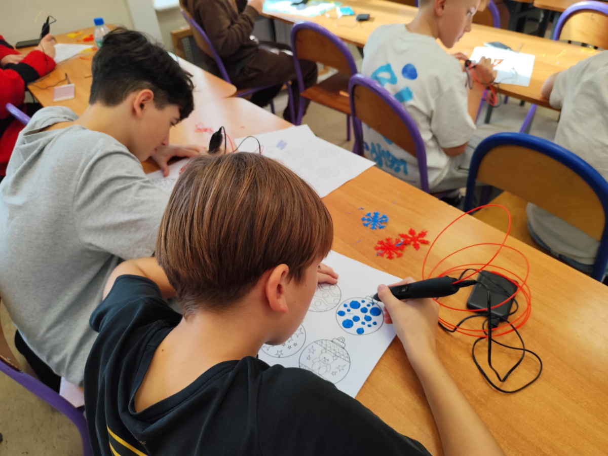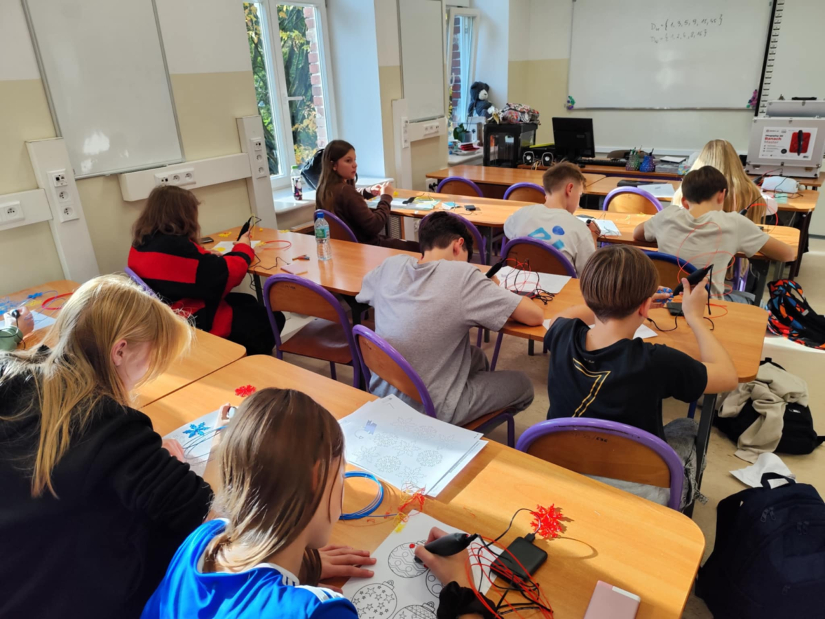 Uczniowie klas szóstych wzięli udział w wyjątkowych warsztatach w ramach działalności szkolnej pracowni „Rękodzielnia”. Były to ich pierwsze zajęcia z długopisami 3D, które zostały zakupione dzięki programowi Laboratoria Przyszłości.