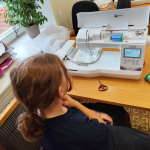 Uczniowie mają tam okazję samodzielnie zaprojektować haft (korzystając z programu graficznego), a następnie mogą go wykonać na dowolnym materiale. Pracownia działa od stycznia 2022r. i już możemy się pochwalić wieloma rzeczami: